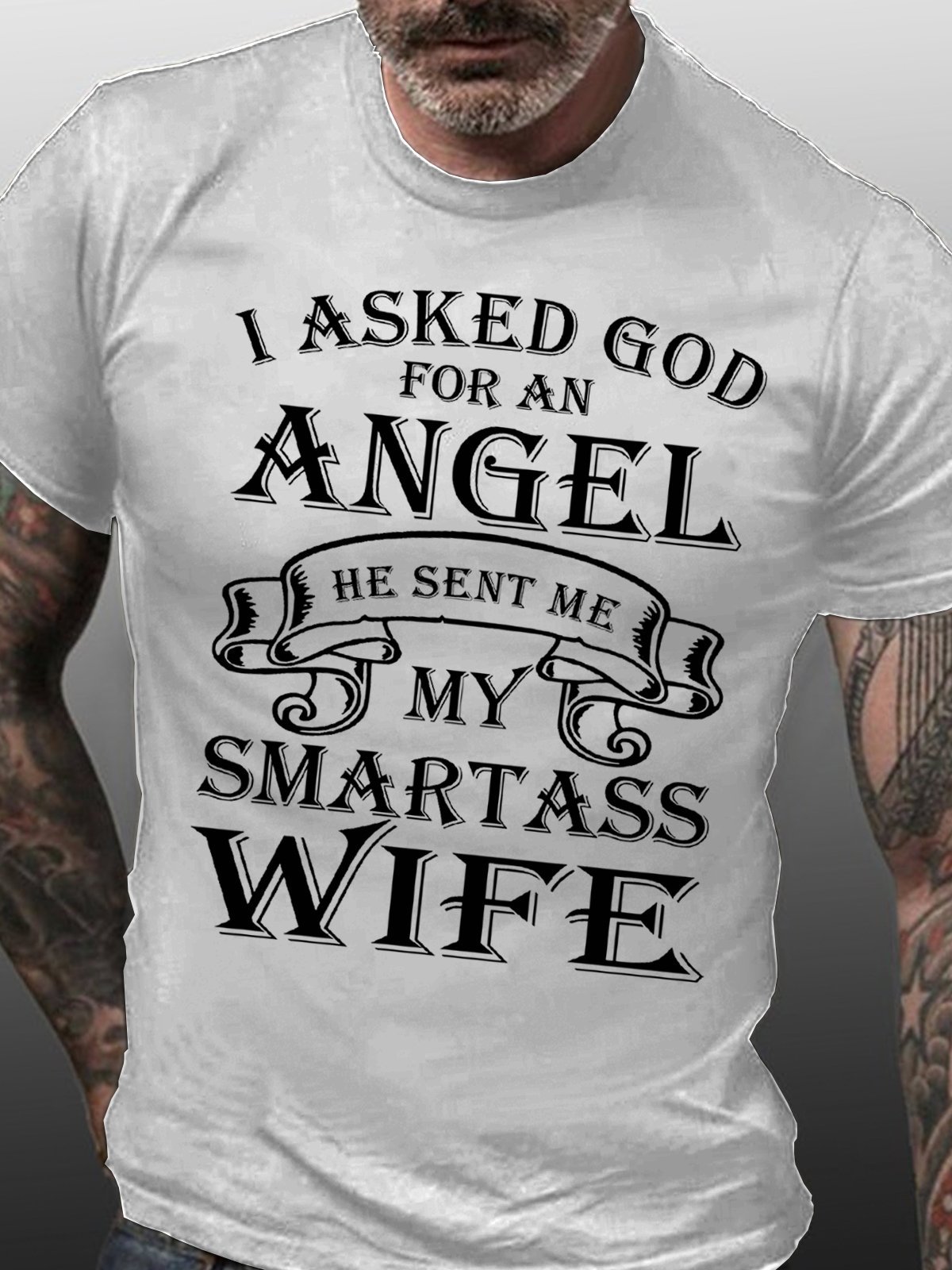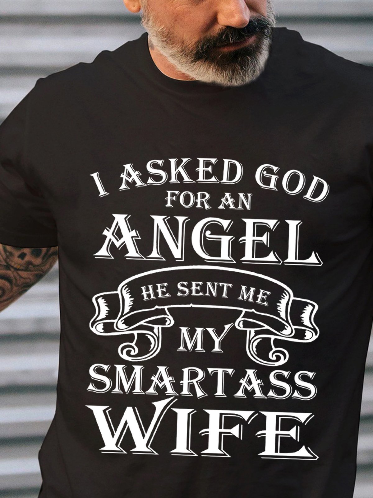 Men Funny I Asked God For An Angel He Sent Me A Smartass Wife Cotton Loose Casual T-Shirt