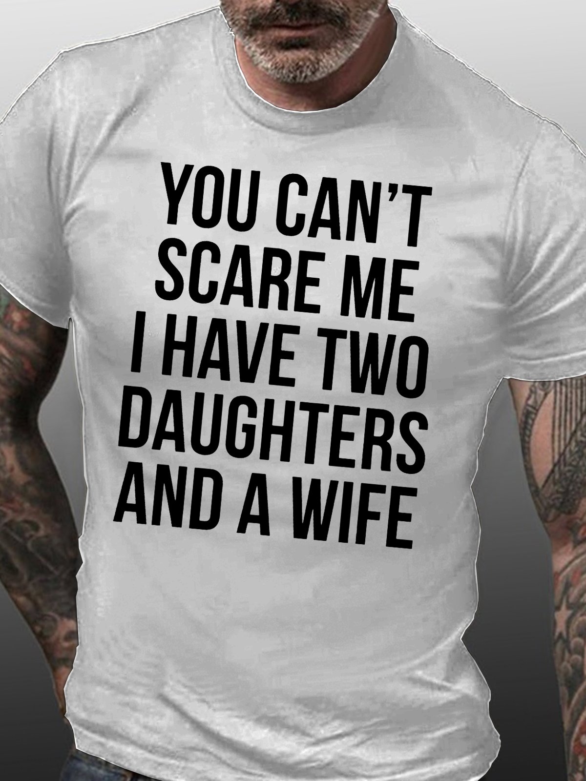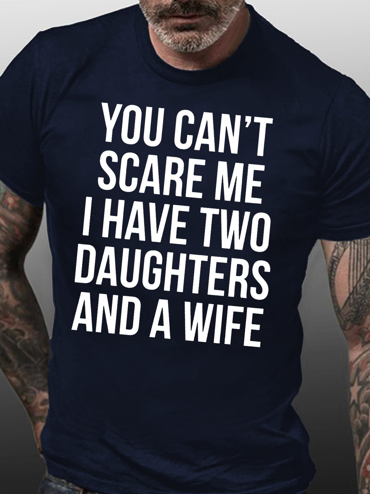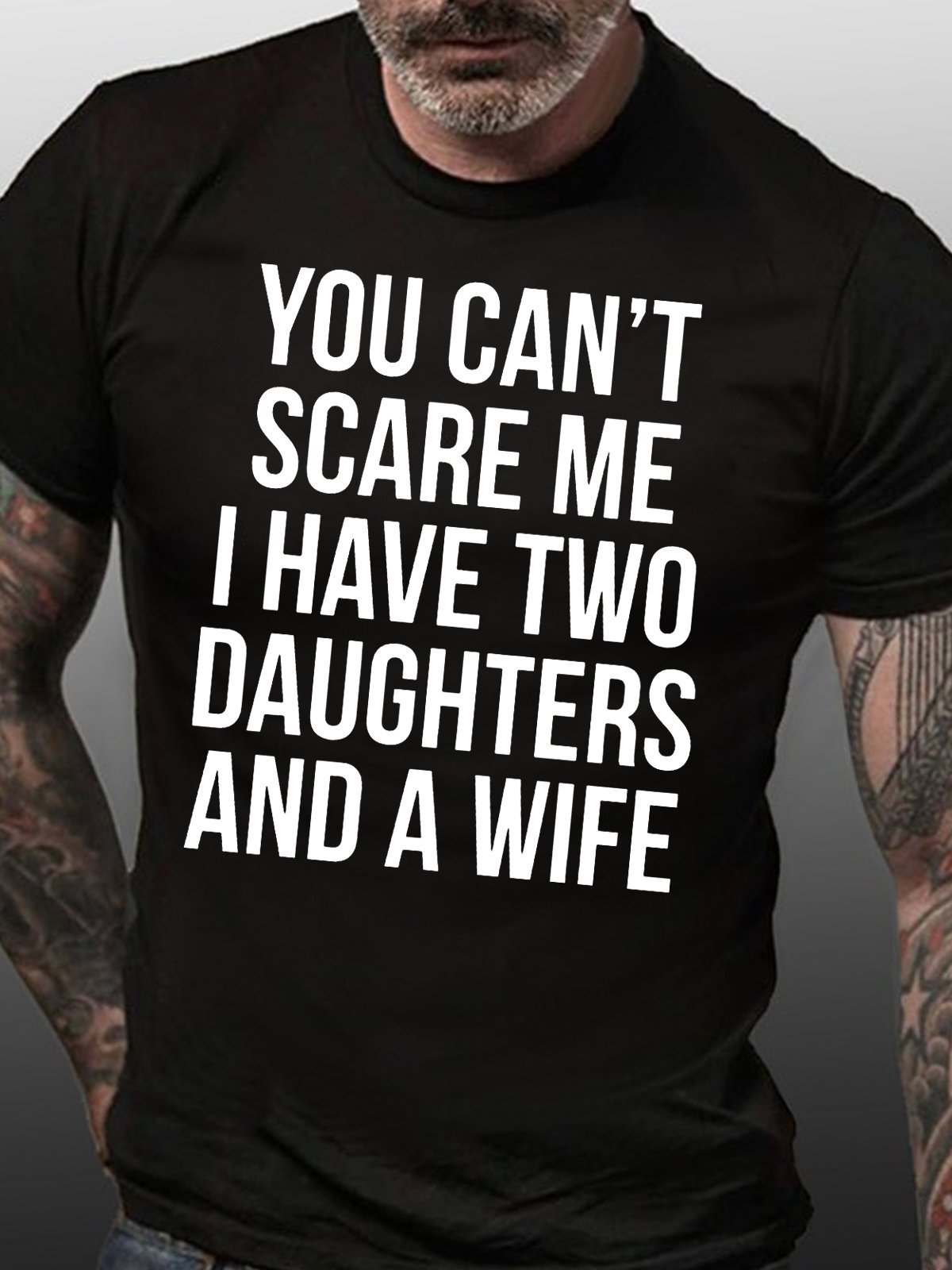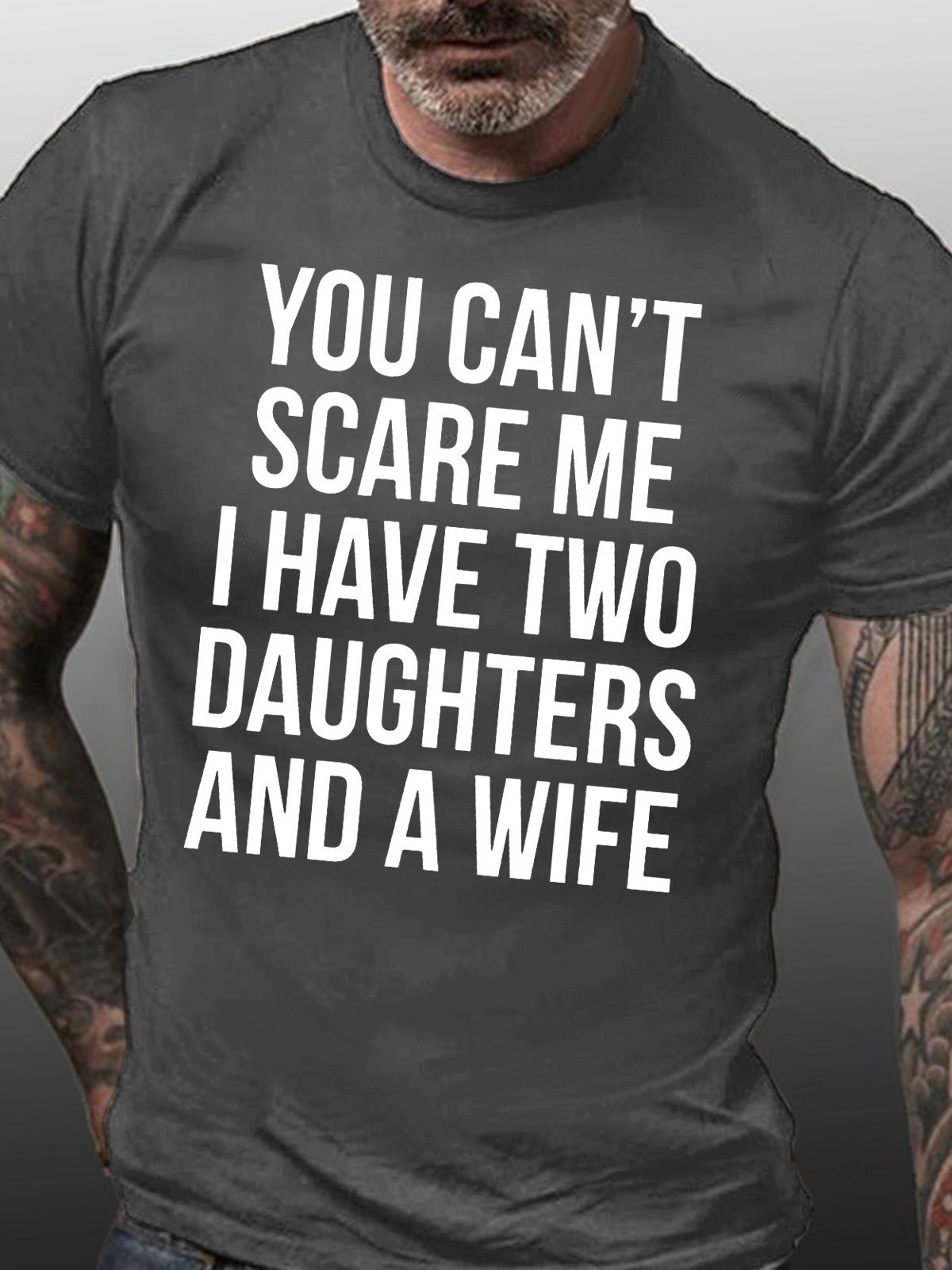 Mens Funny You Can't Scare Me I Have Two Daughters And A Wife Cotton Casual T-Shirt