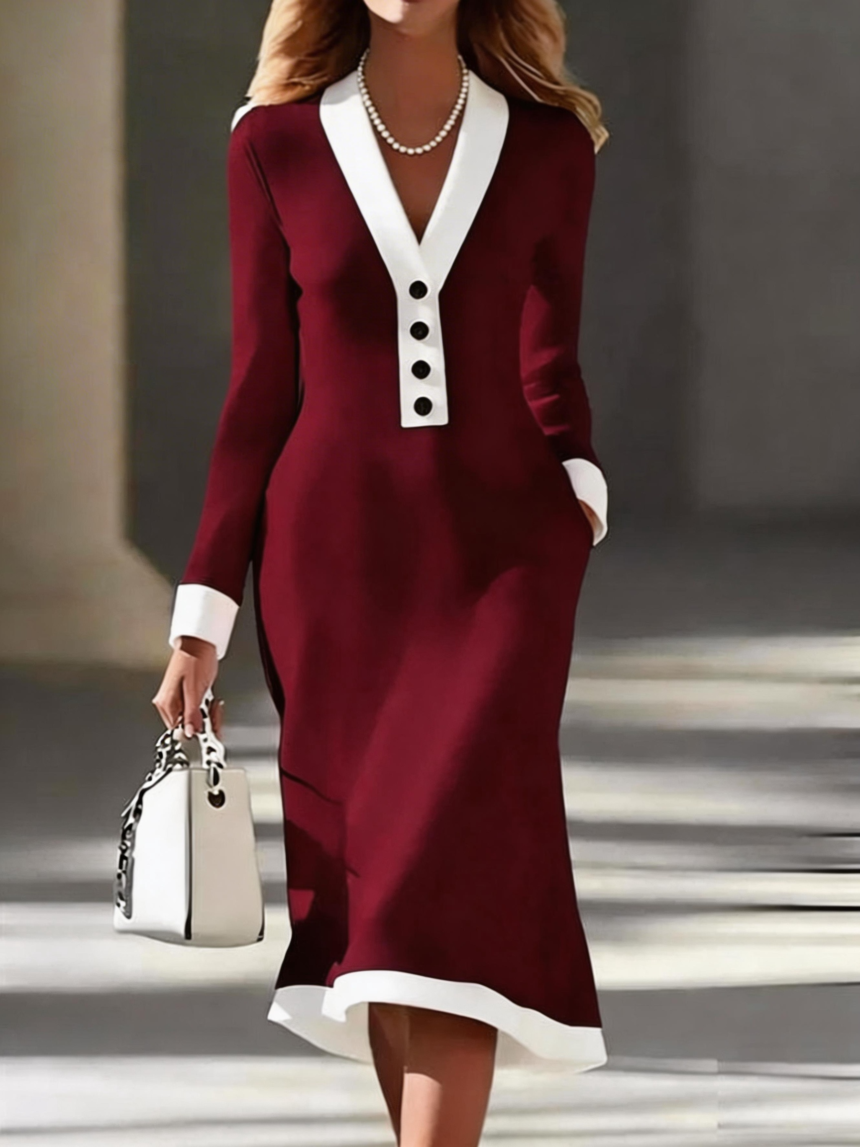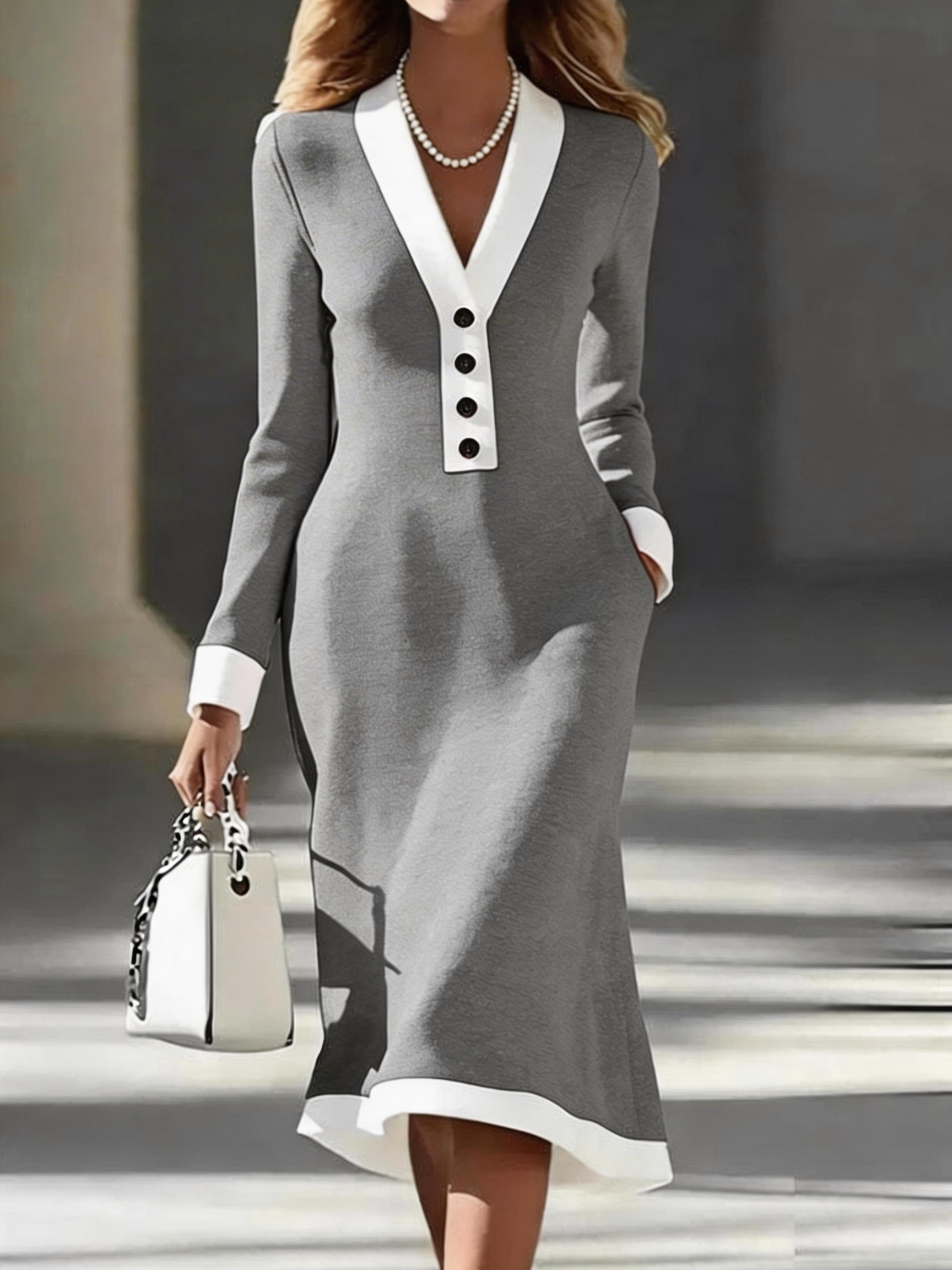 Plain Regular Fit Sexy V Neck Dress With No