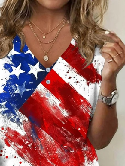 Regular Fit Independence Day V Neck Elegant T-Shirt