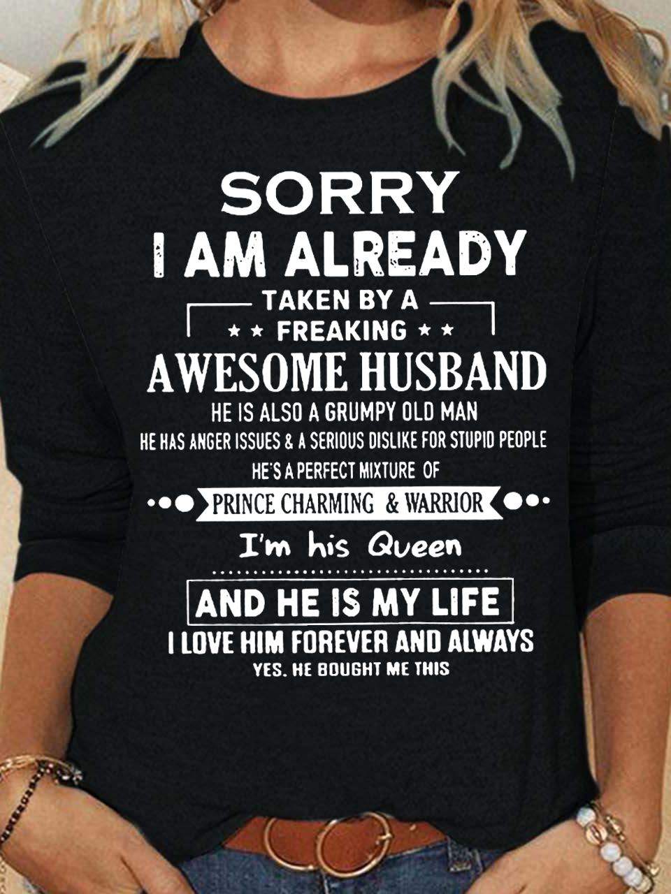 Sorry I’m Already Taken By A Freaking Awesome Husband Women's Long Sleeve Shirt
