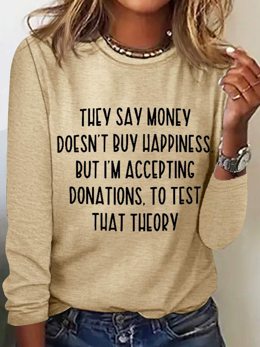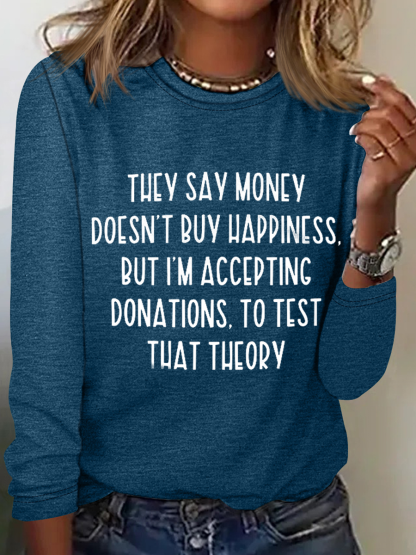 They Say Money Doesn't Buy Happiness Crew Neck Regular Fit Cotton-Blend Long Sleeve Shirt
