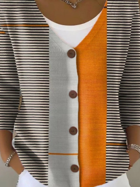 Vintage Abstract Geometry Art Print Buttoned V-Neck Cardigan Sweater