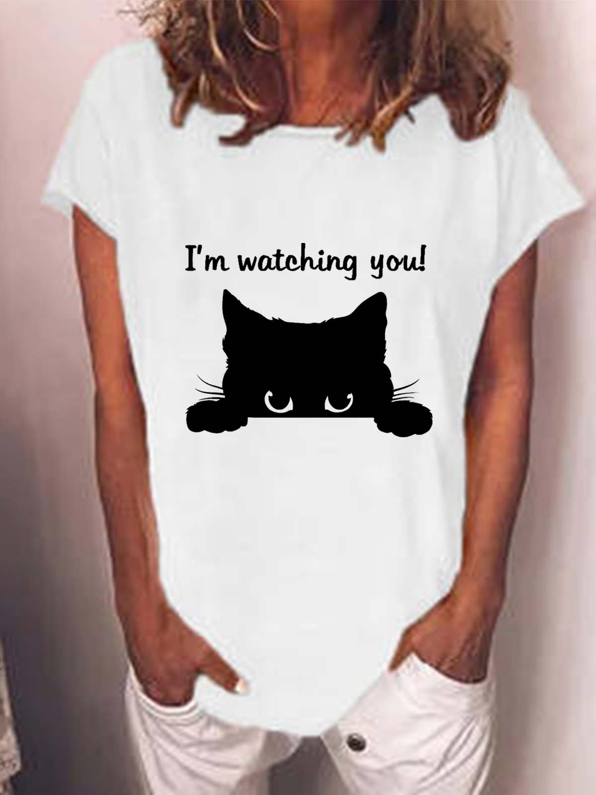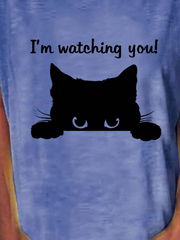 Women Cat Letter Printing Casual Cotton-Blend Cat T-Shirt