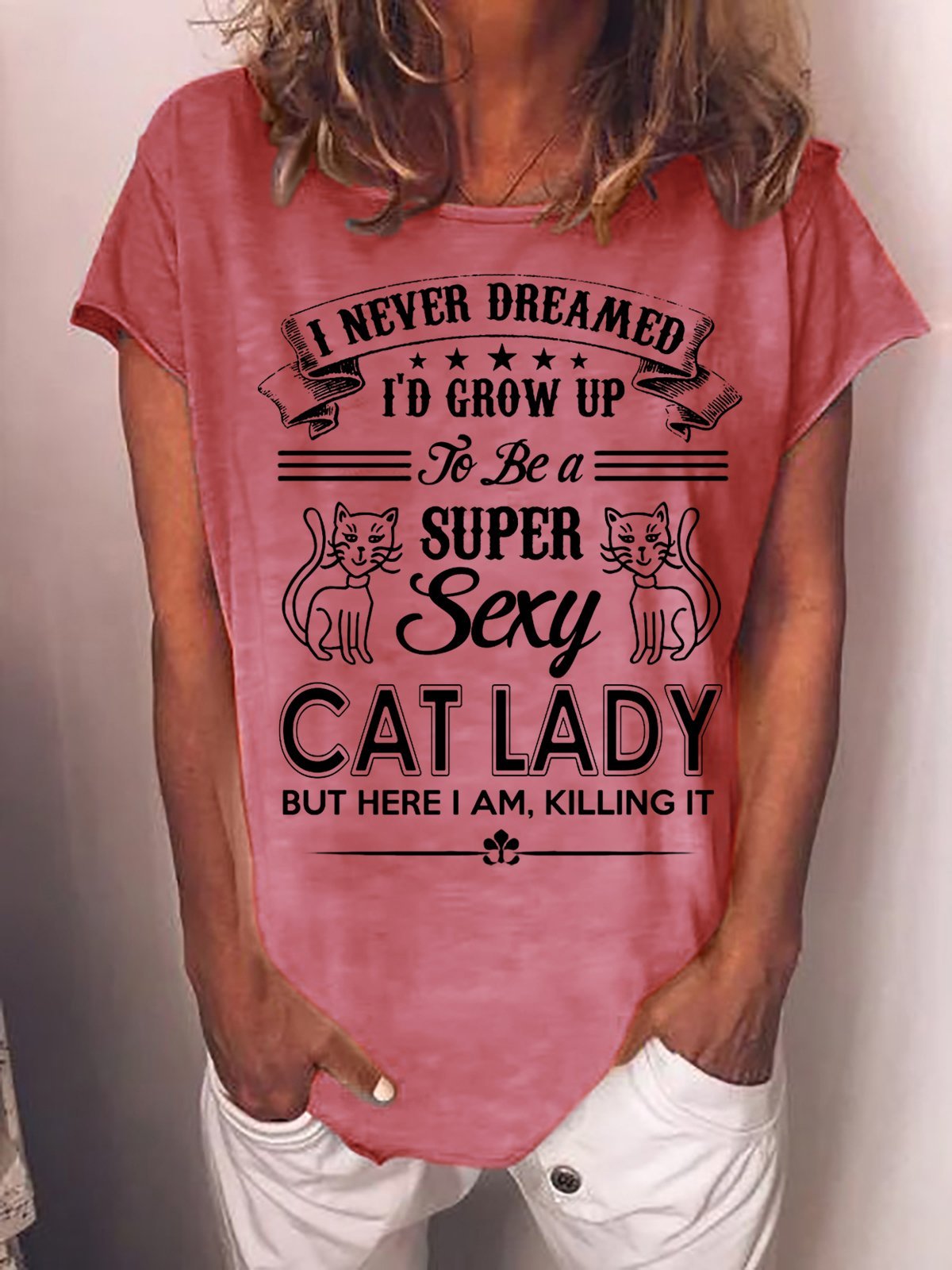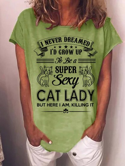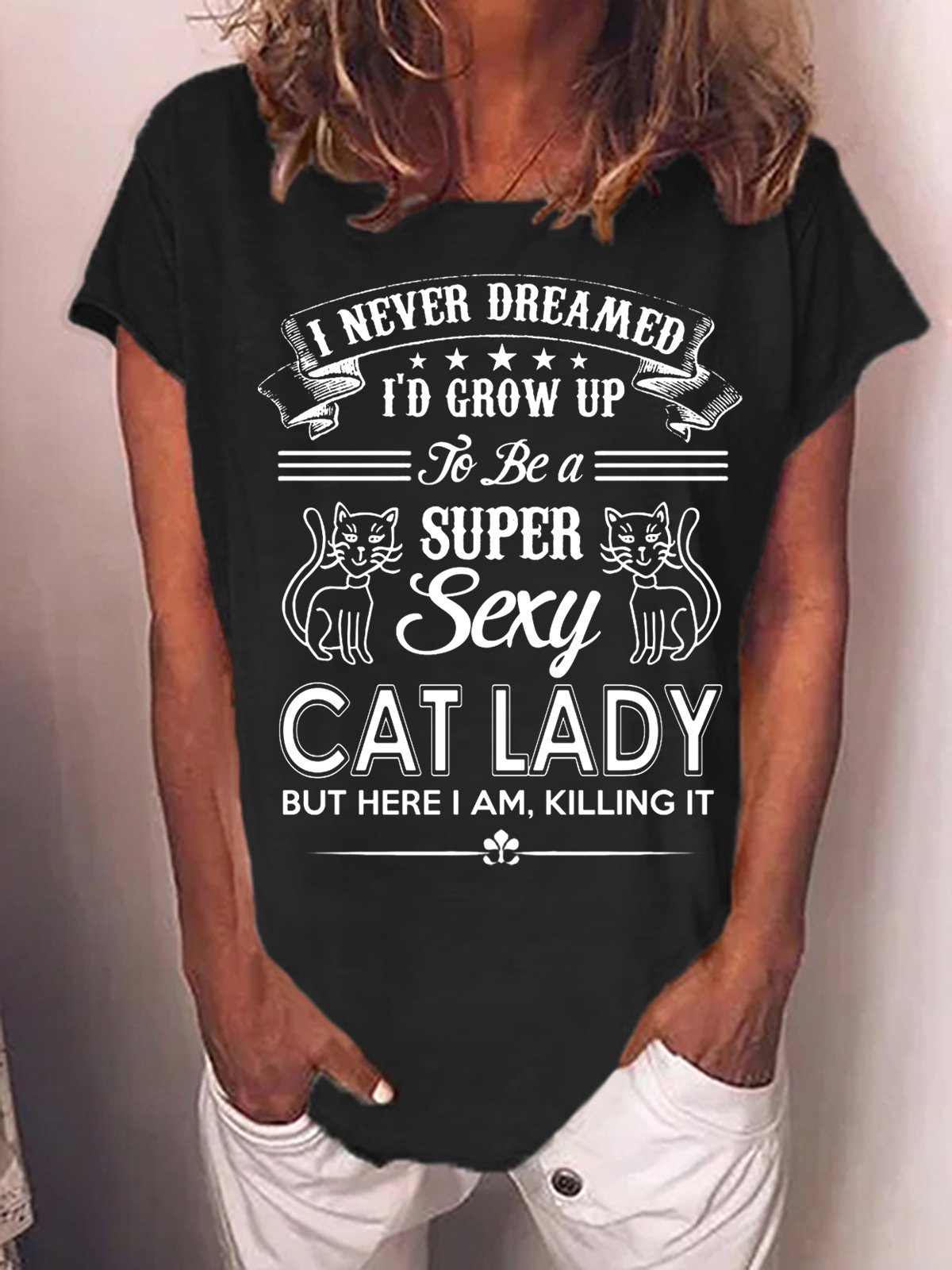 Women Funny I Never Dreamed I'd Grow Up To Be A Super Sexy Cat Lady But Here I Am Killing It Animal T-Shirt