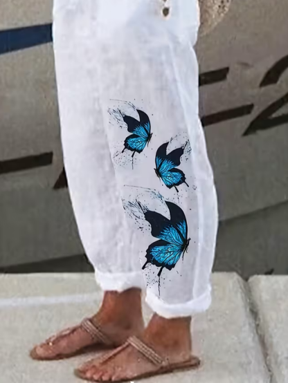 Women's H-Line Baggy Pants Daily Going Out Pants White Casual Printing Butterfly Spring/Fall Pants