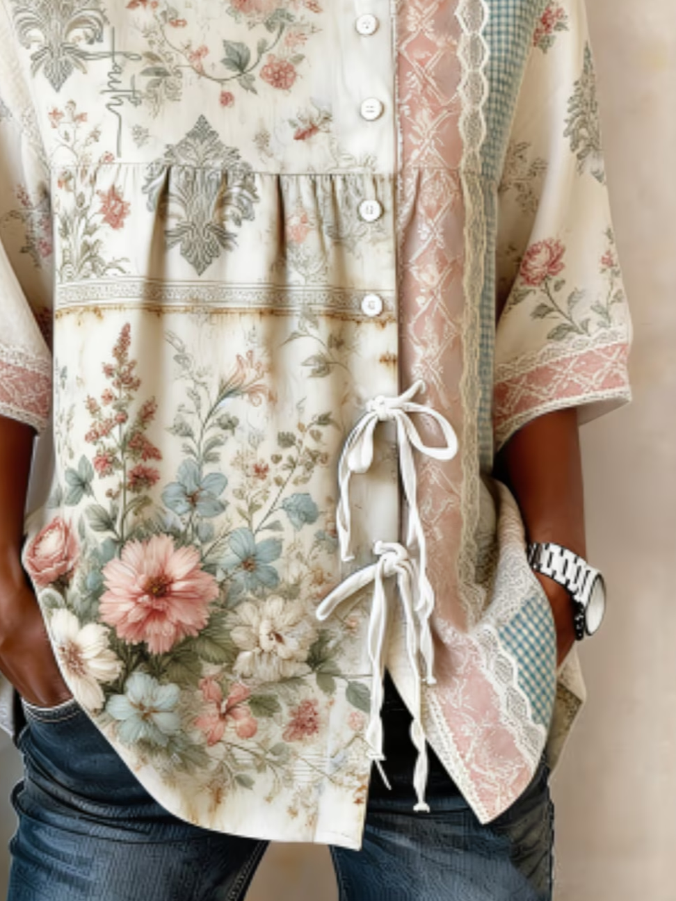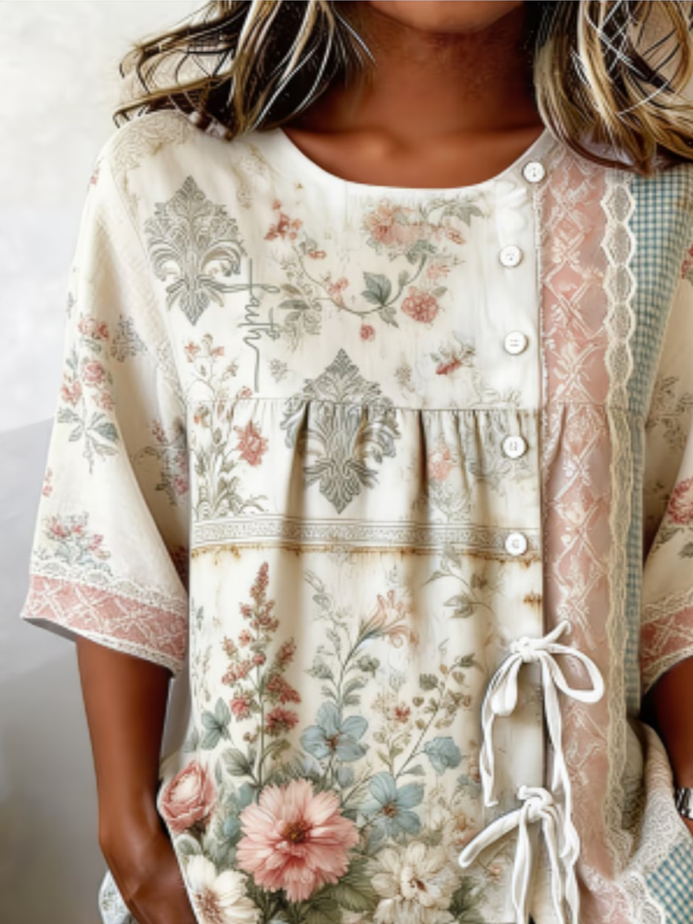 Women's Half Sleeve Shirt Summer As Picture Floral Crew Neck Daily Going Out Vintage Top