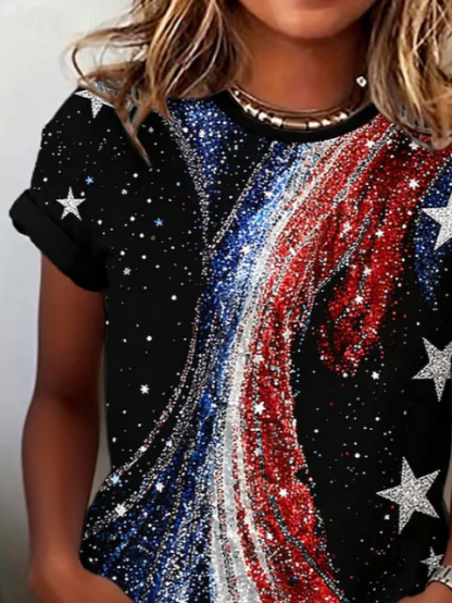 Women's Short Sleeve T-shirt Summer Black America Flag Printing Jersey Crew Neck Daily Going Out Casual Top