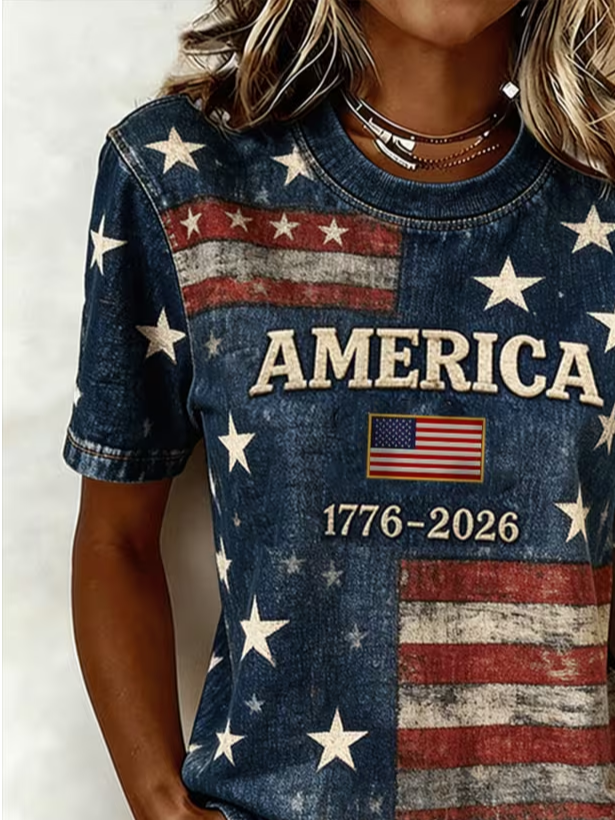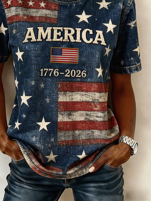 Women's Short Sleeve T-shirt Summer Navyblue Independence Day (Flag) Printing Jersey Crew Neck Daily Going Out Casual Top