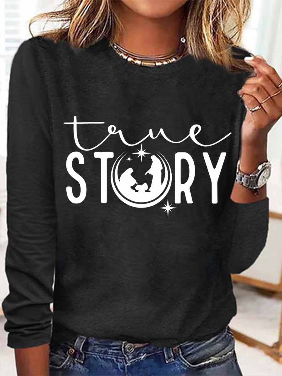 Women's Jesus Birth True Story Regular Fit Simple Crew Neck Long Sleeve Top