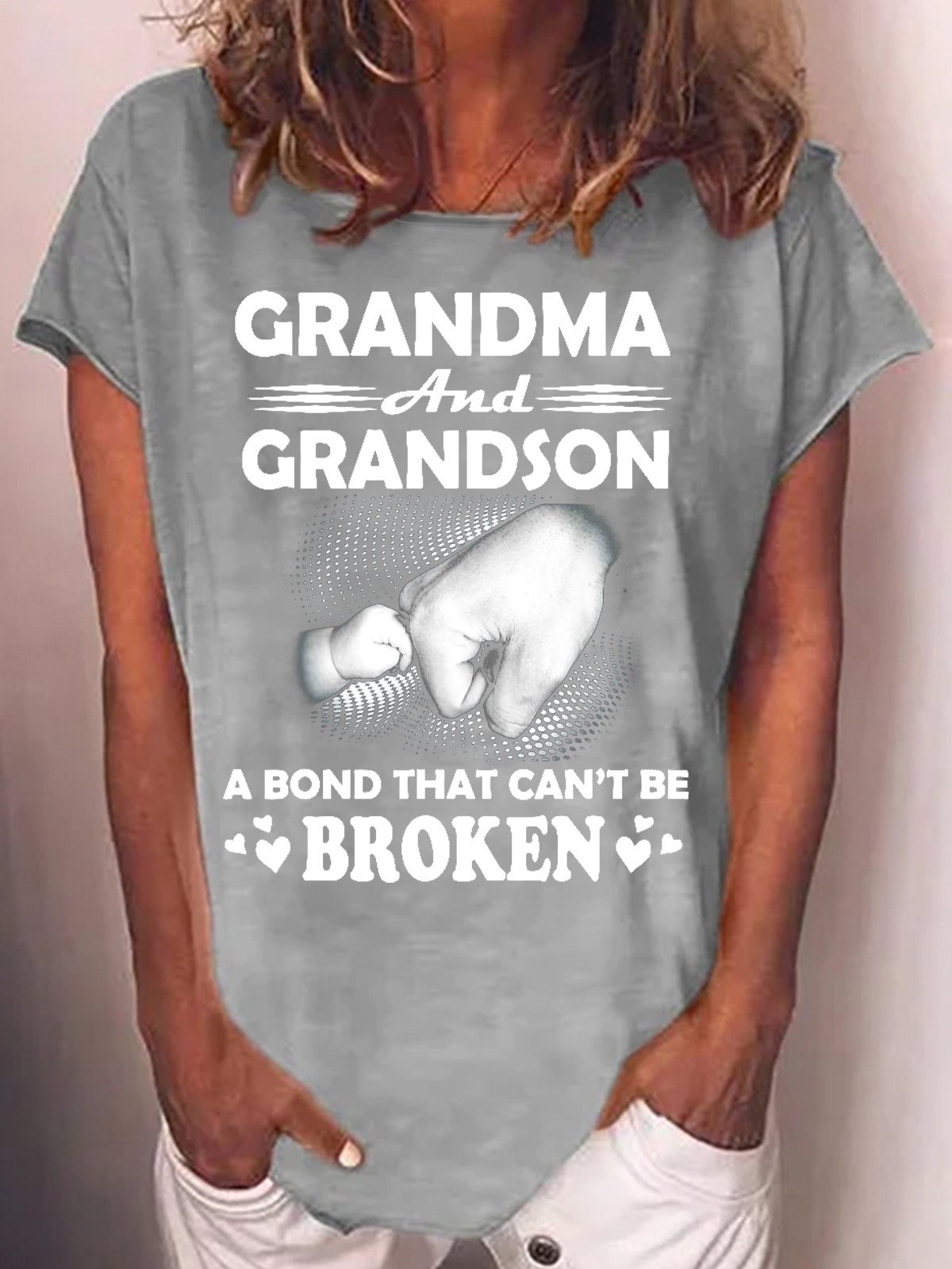 Womens Grandma And Grandson A Bond That Cant Be Broken Cotton-Blend Crew Neck T-Shirt