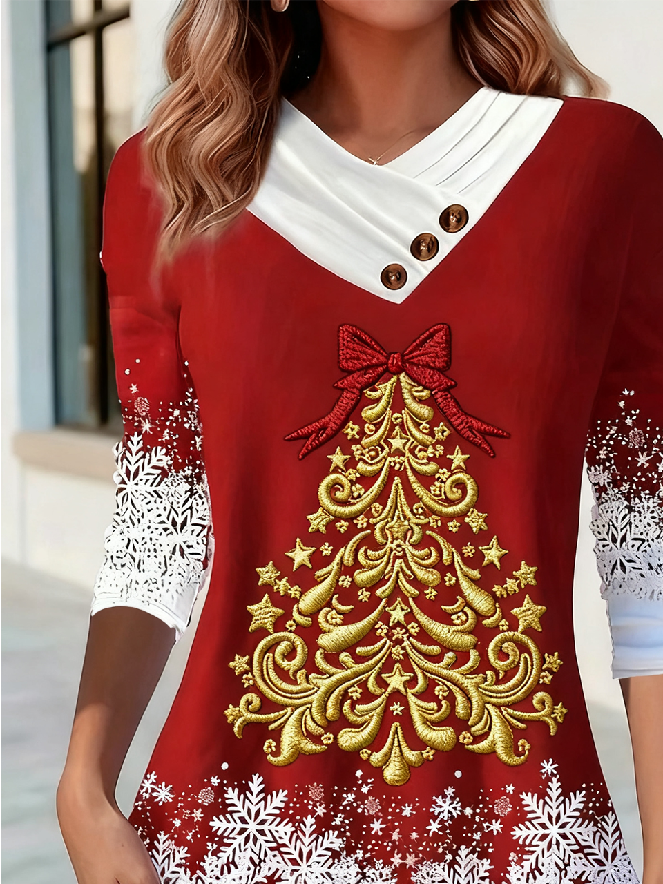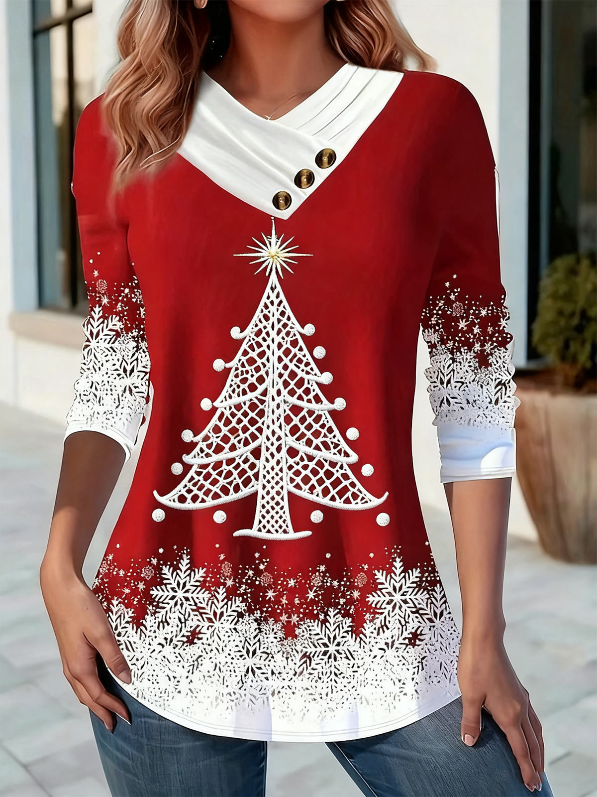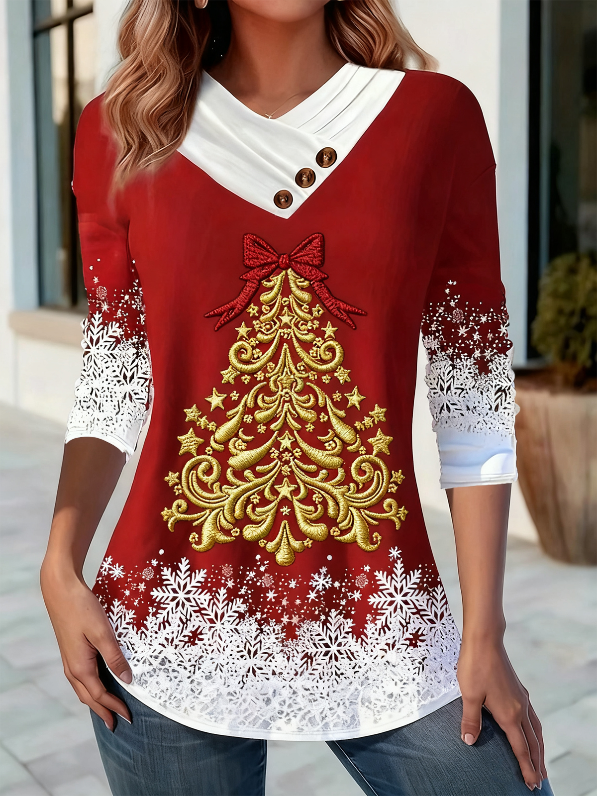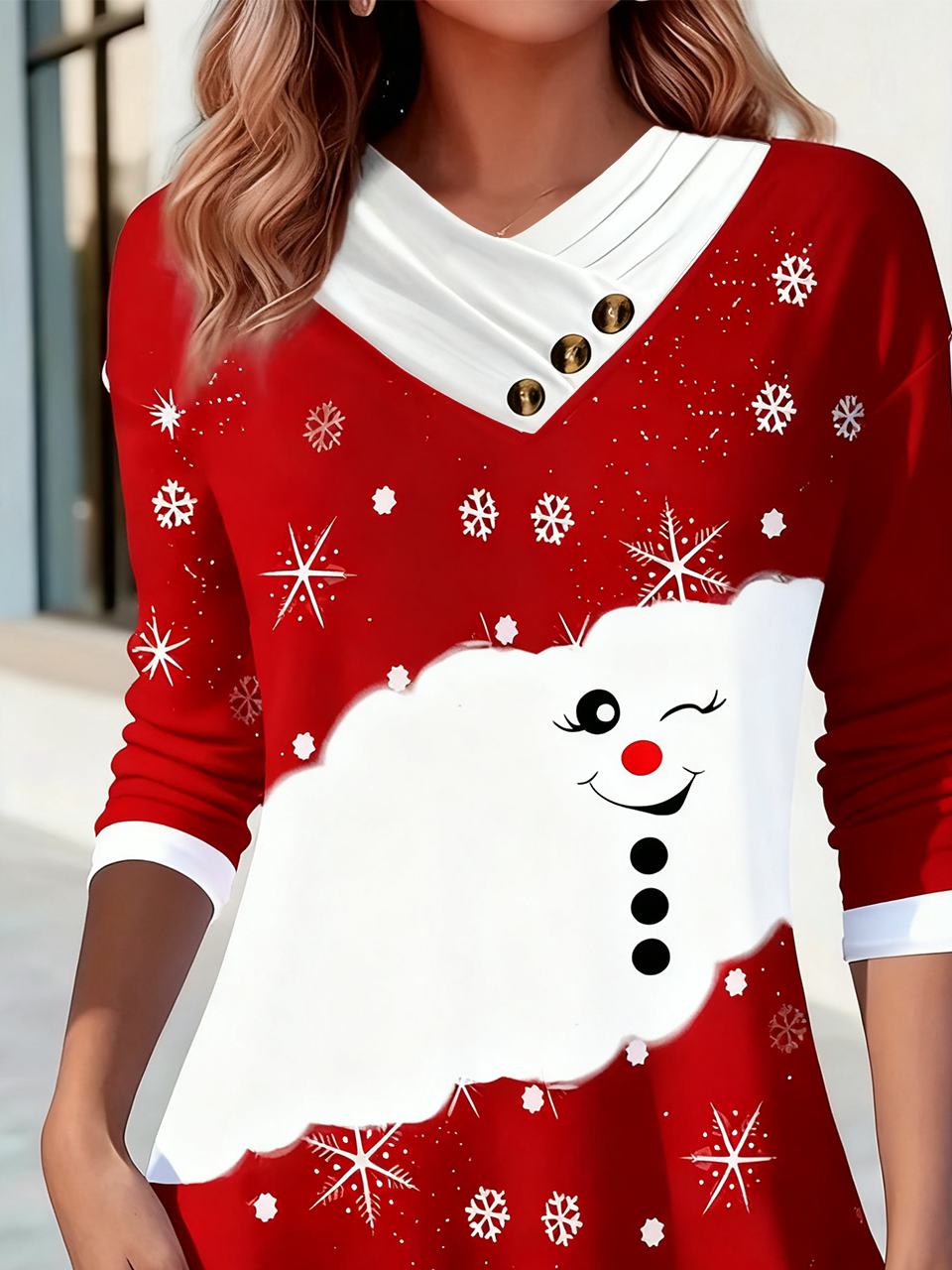 Women's Long Sleeve T-shirt Spring/Fall As Picture Christmas Printing V Neck Daily Going Out Casual Top