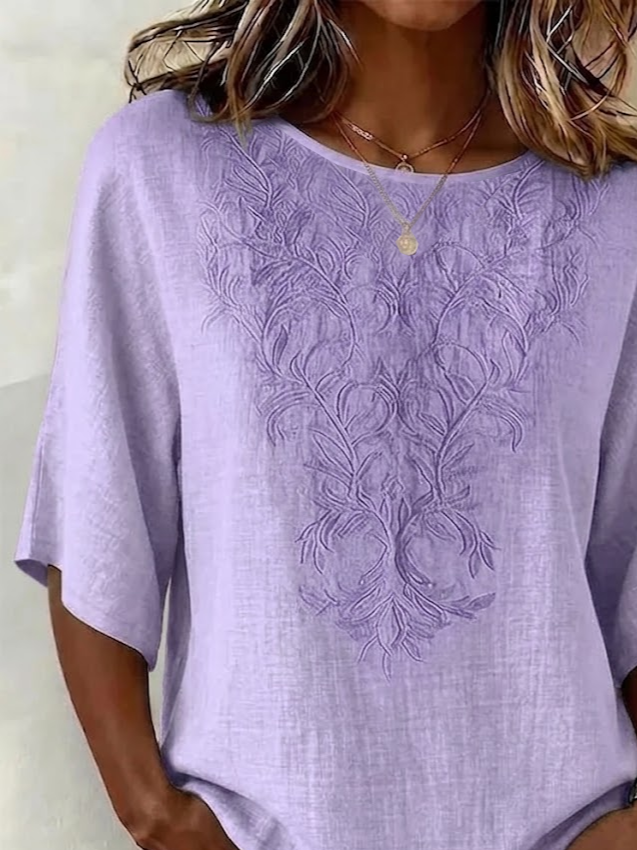 3D Printing Casual Linen Blend Crew Neck Loose Casual Top
