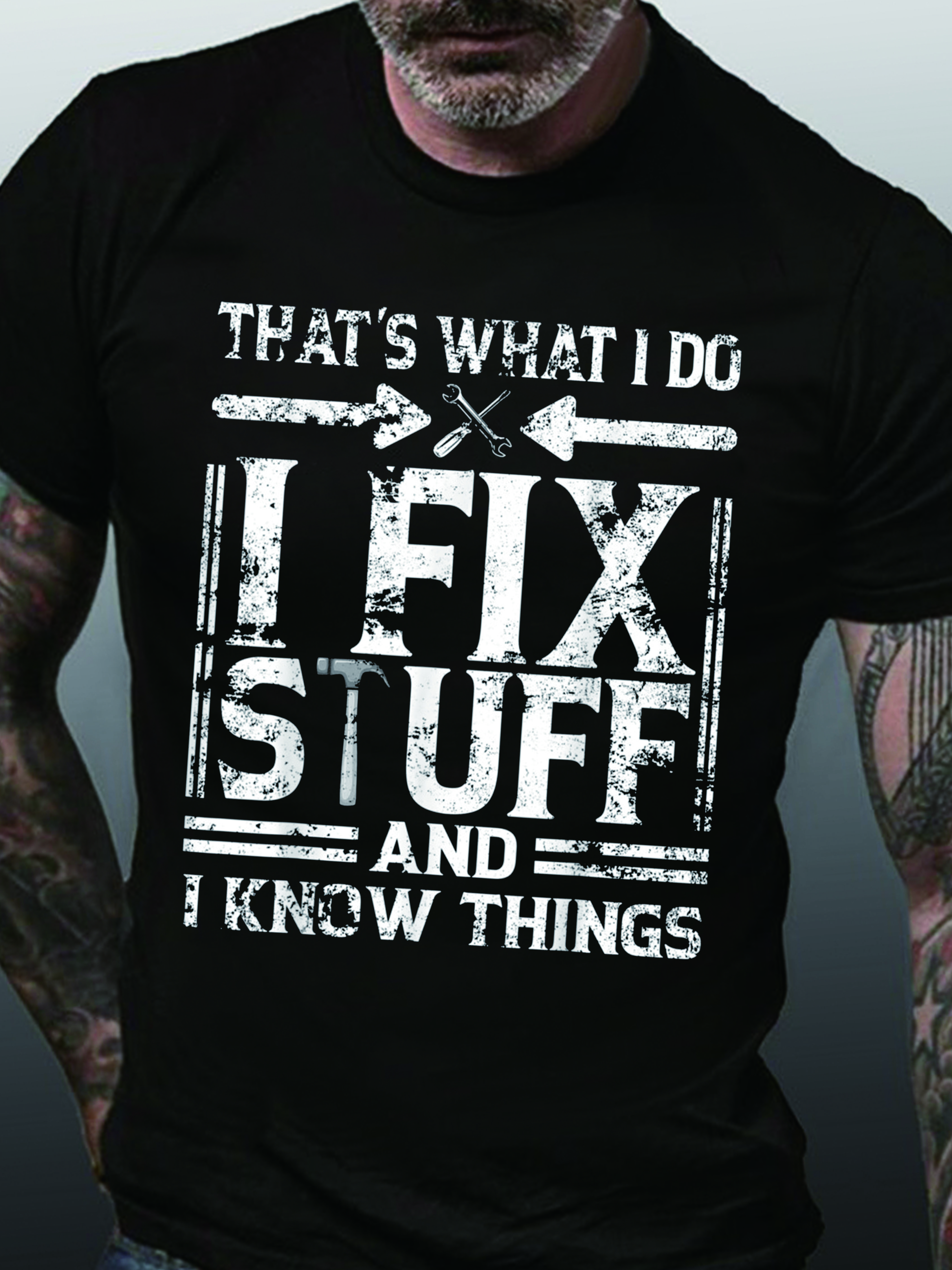 Men I Fix Stuff I Know Things Letters Casual Fit Crew Neck T-Shirt