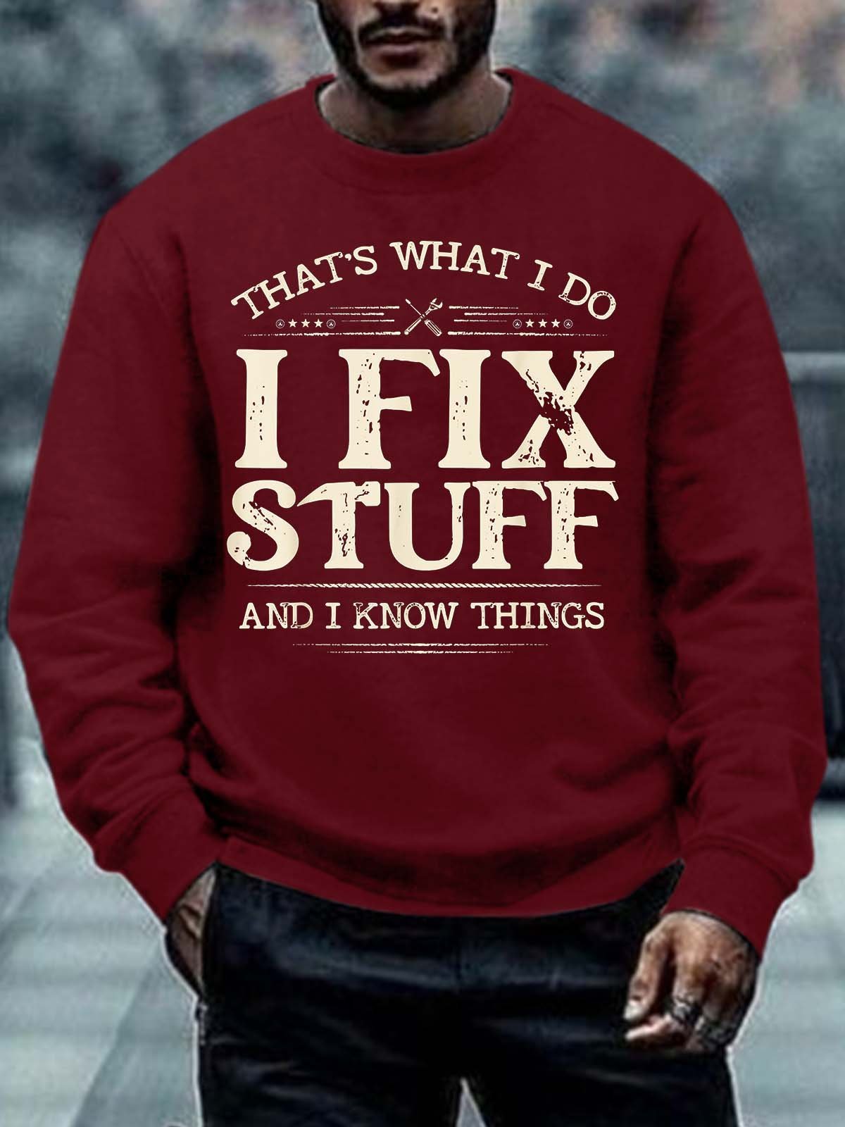 Men I Fix Stuff Know Things Letters Casual Sweatshirt