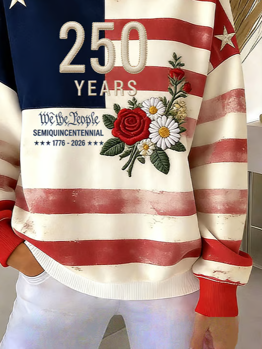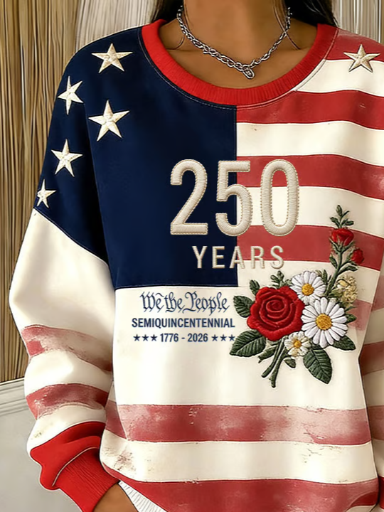 Casual America Flag Printing Crew Neck Sweatshirt