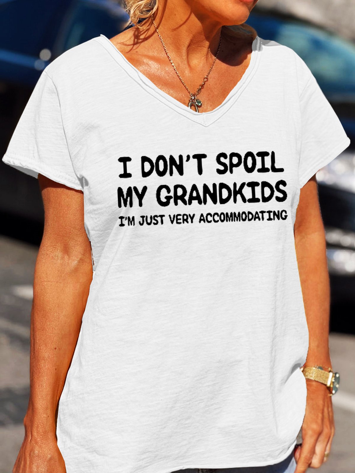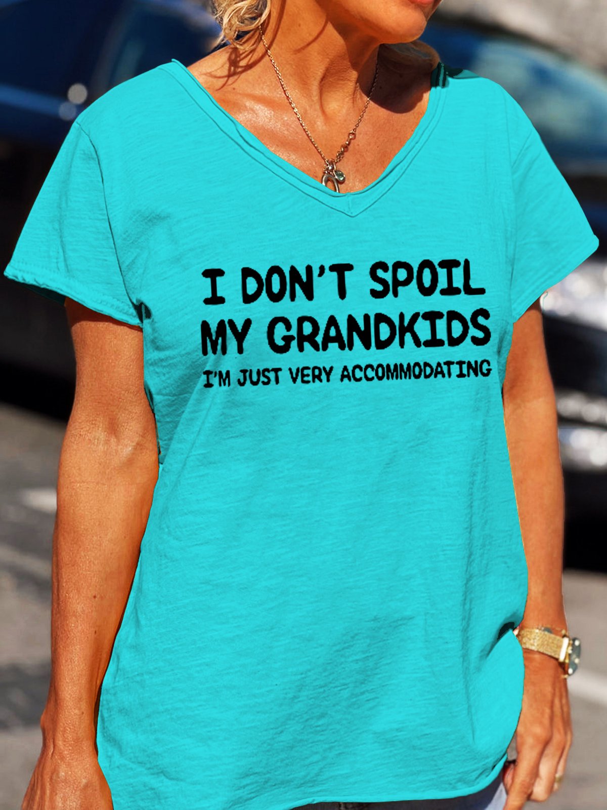 I Don't Spoil My Grandkids V Neck Casual letterShort Sleeve T-Shirt