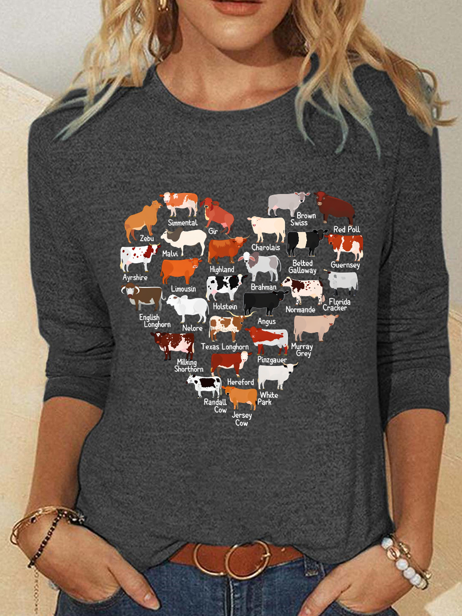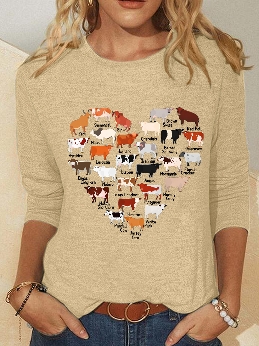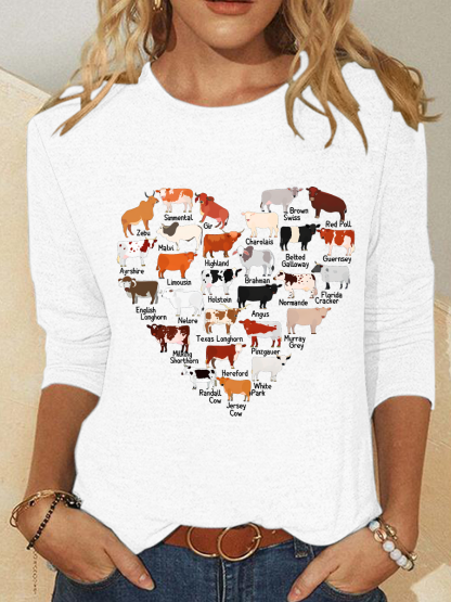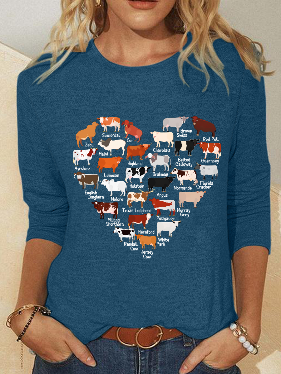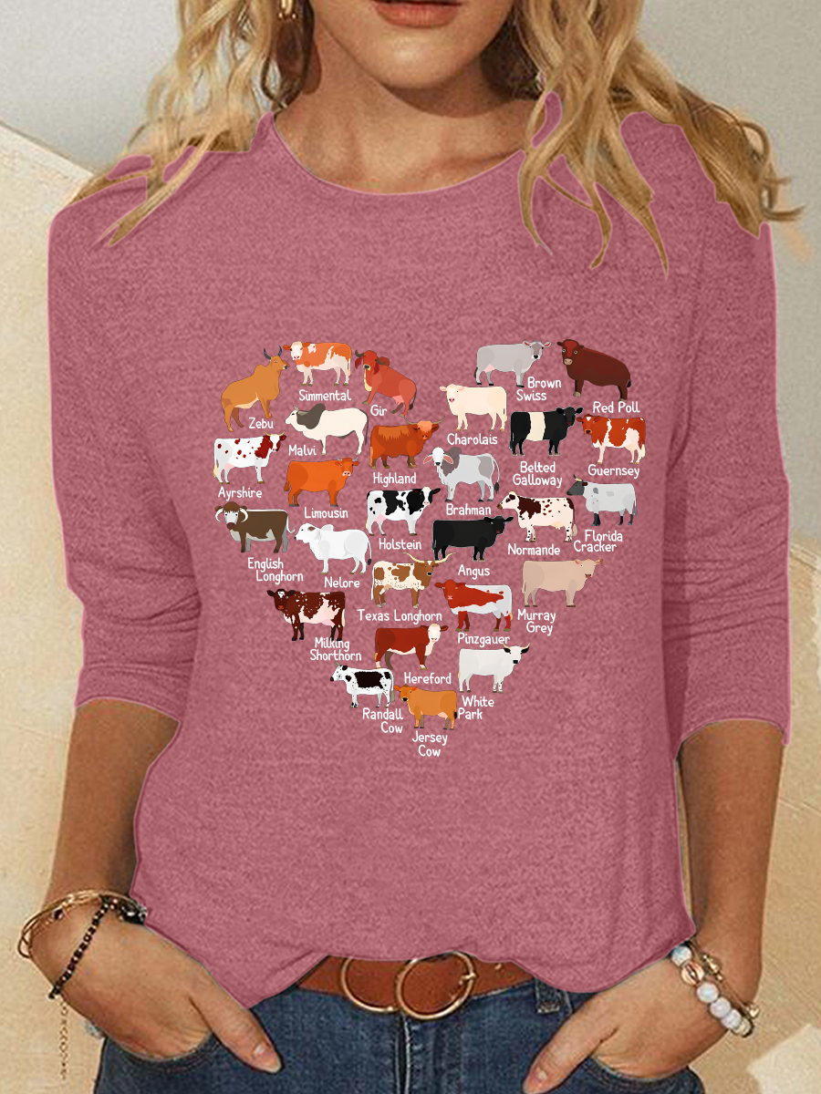 Love Cows Heart Casual Long Sleeve Shirt