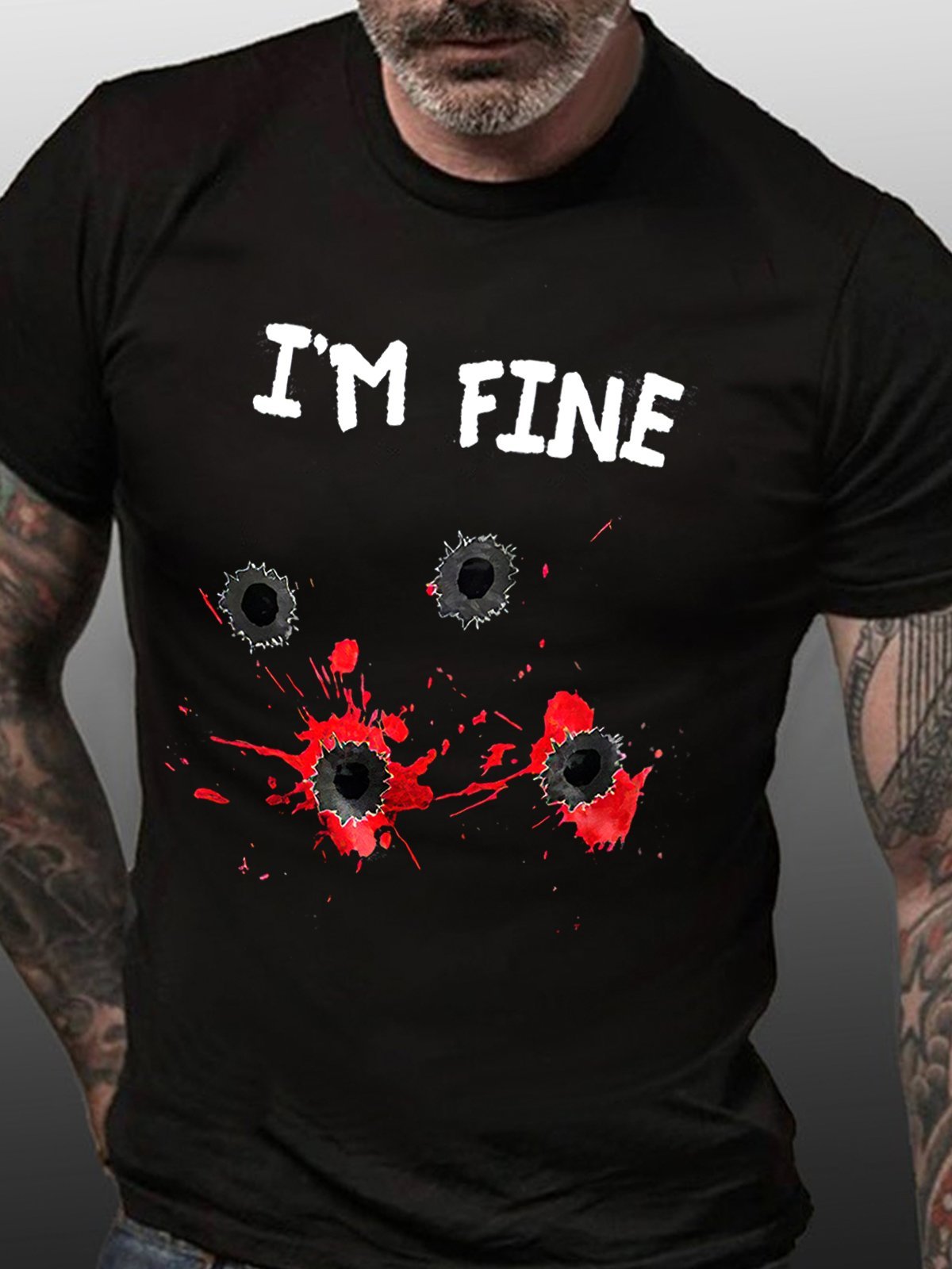 Men I'M Fine Funny Cotton Crew Neck Casual T-Shirt
