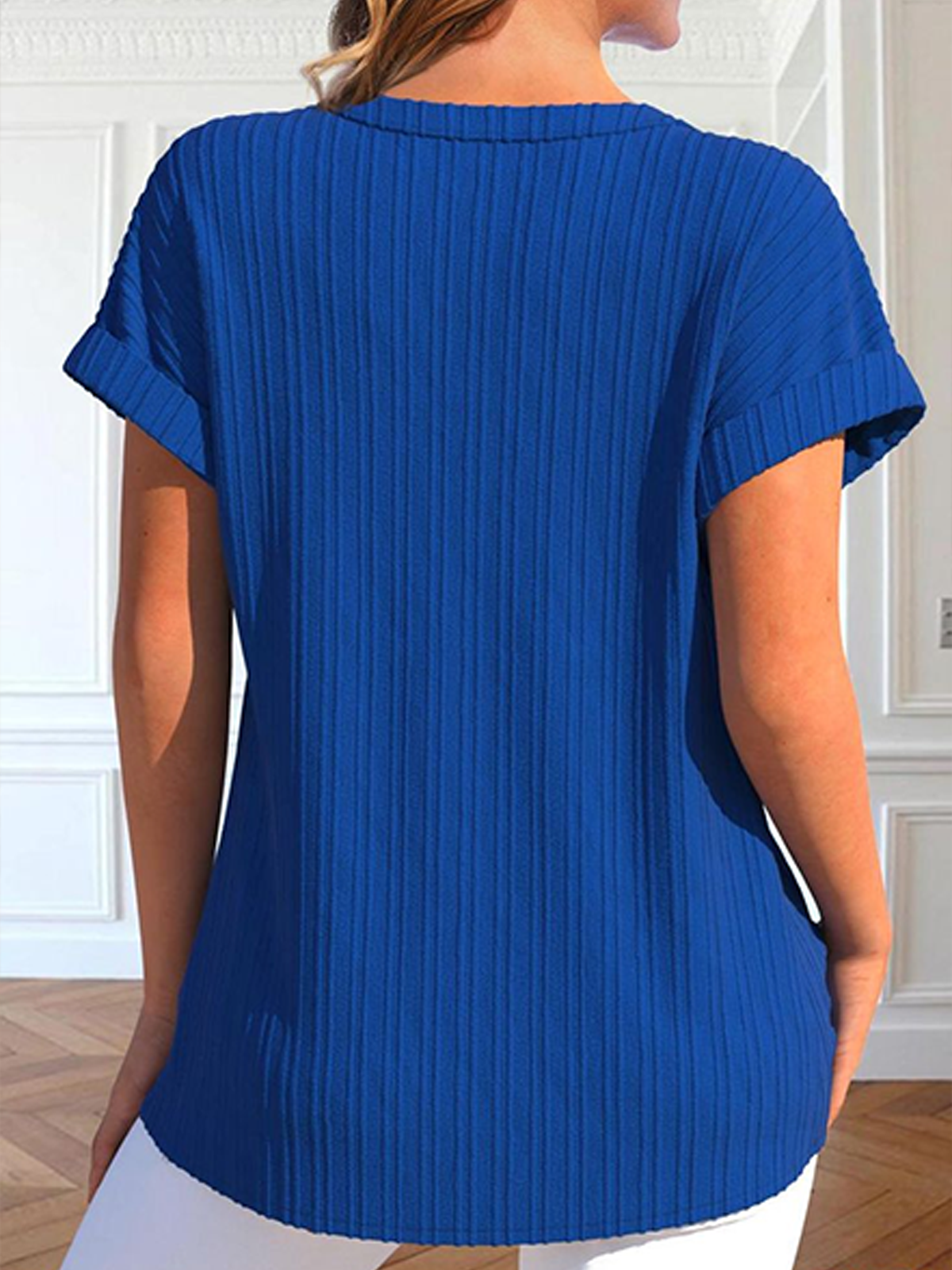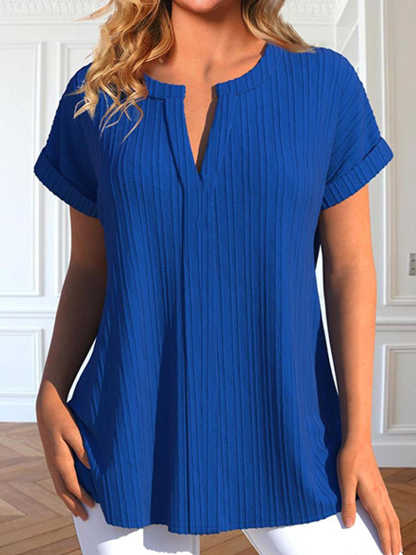 Notched Cotton Elegant Plain Blouse