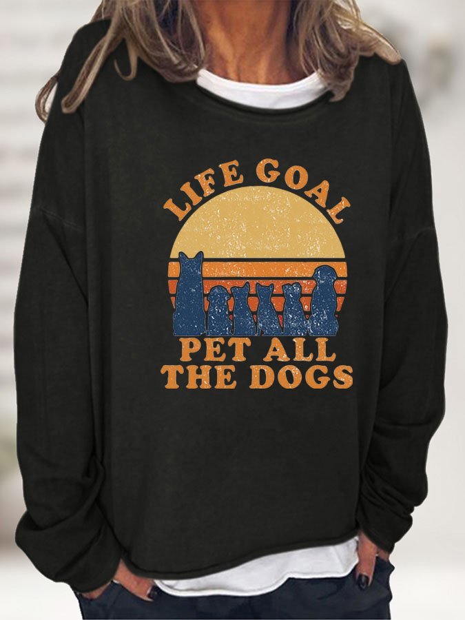 Women Life Goal Pet All The Dog Cotton-Blend Text Letters Crew Neck Sweatshirt