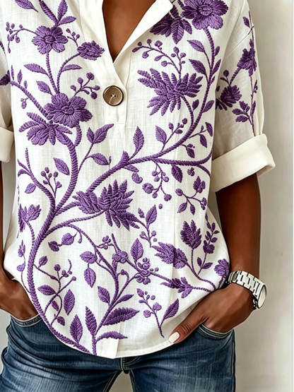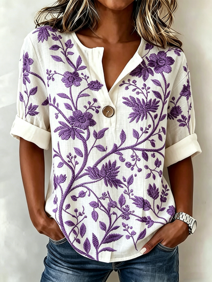 V Neck Linen Blend Simple Loose Shirt