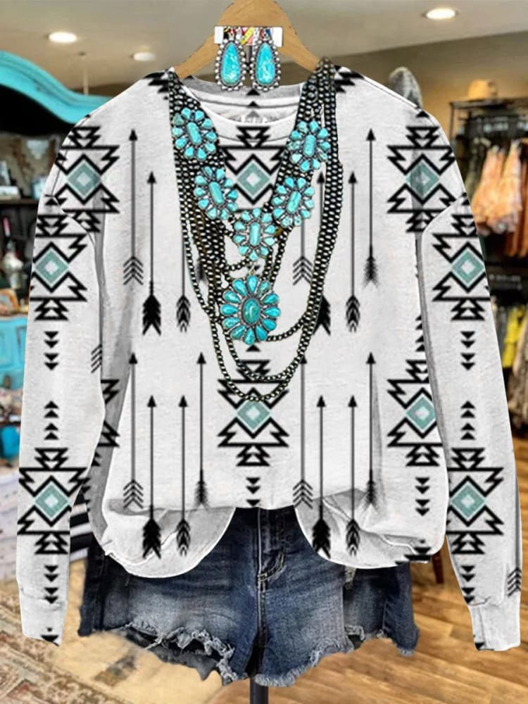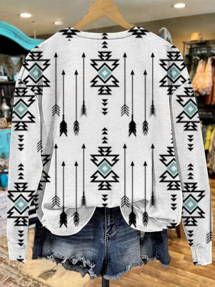 White Vintage Aztec Print Casual Sweatshirt