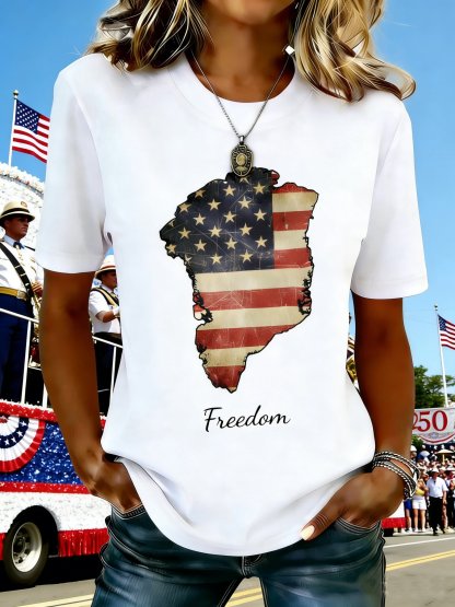 Women's 250th Anniversary Of The Founding Of the United States Vintage Short Sleeve Crew Neck Music Festival 3D Printing Daily Going Out Casual T-Shirt