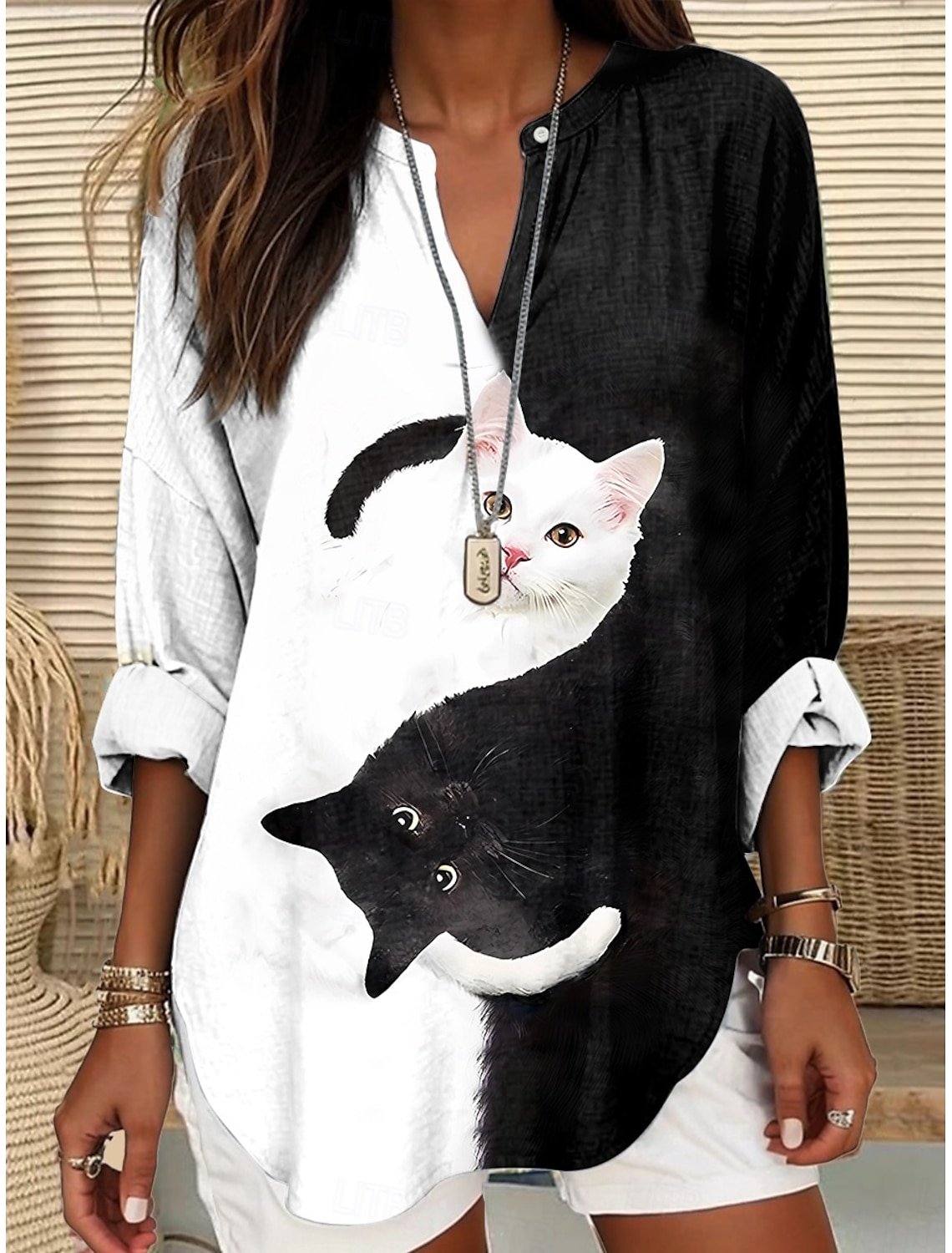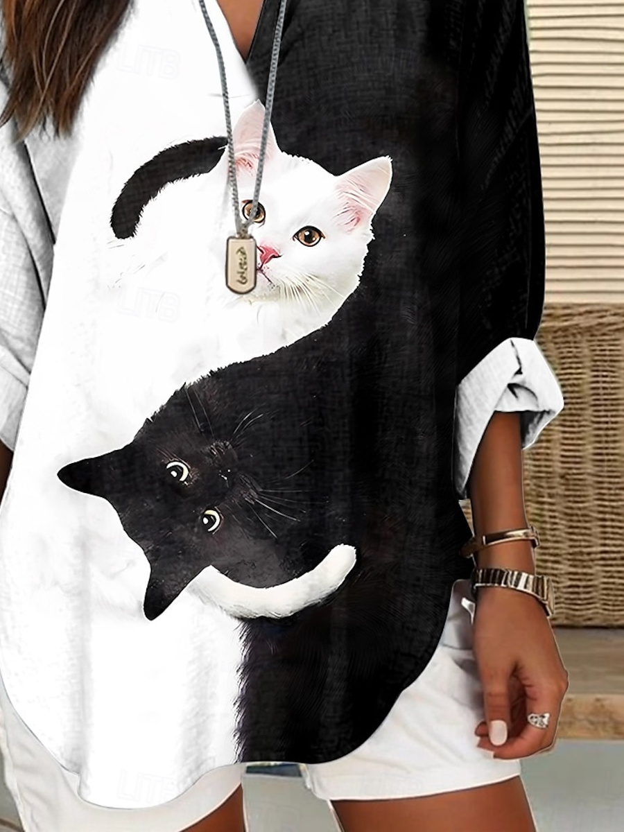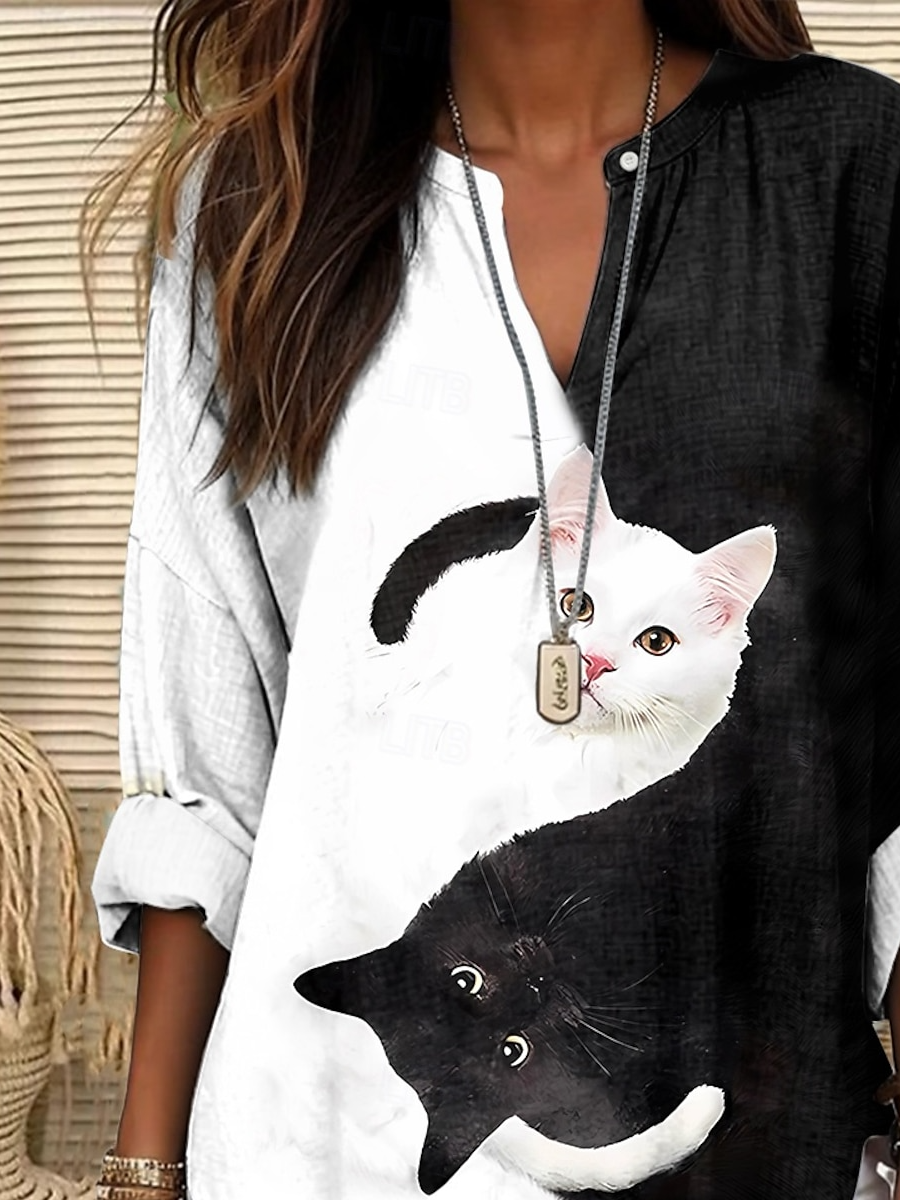 Women's Casual Long-Sleeved Printed V-Neck Shirt
