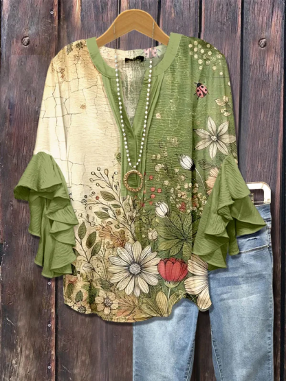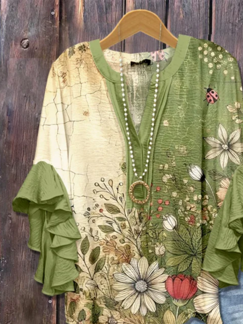 Women's Half Sleeve Shirt Summer Green Floral Printing V Neck Daily Going Out Casual Top