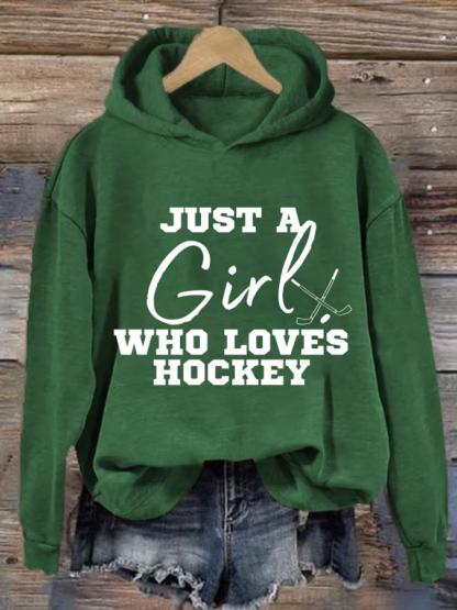 Women's Just A Girl Who Loves Hockey Print Casual Sweatshirt Hoodie