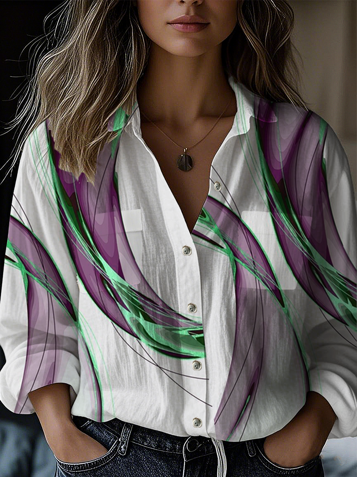 Women's Retro Print Loose Shirt Fashion Regular Fit Top