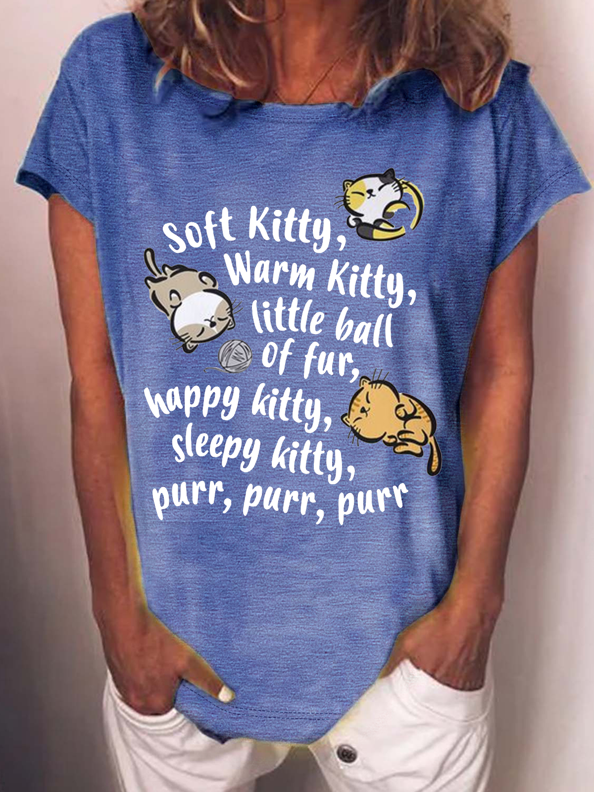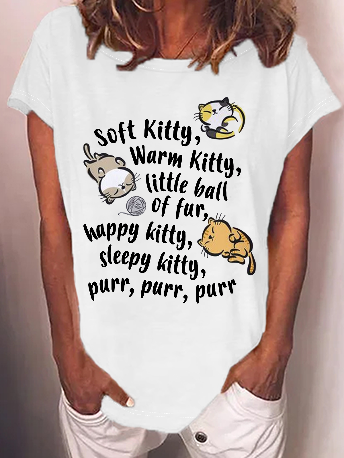 Women's Soft Kitty Warm Kitty Cat Cotton-Blend Crew Neck T-Shirt