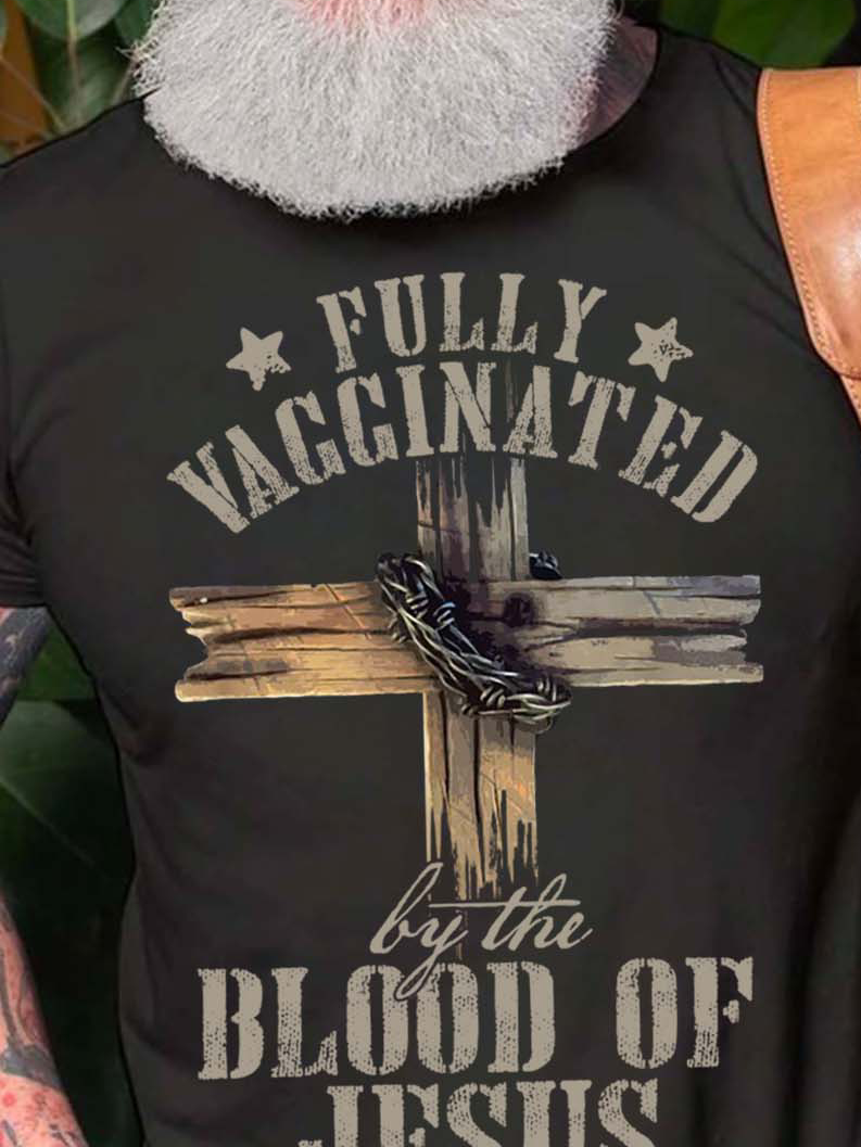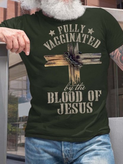 Men Fully Vagginated Blood Of Jesus Fit Casual Text Letters T-Shirt