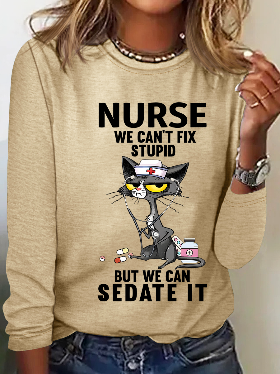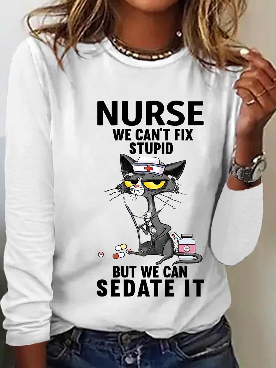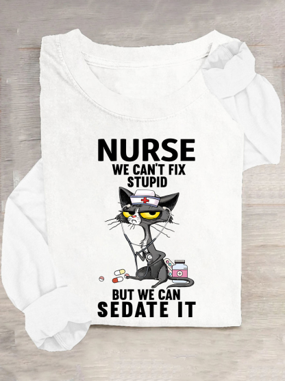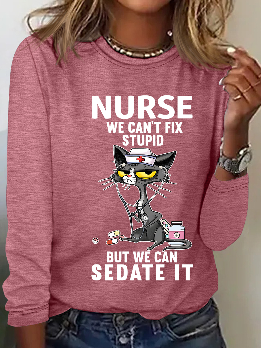 Cat Nurse We Can't Fix Stupid But We Can Sedate It Casual Long Sleeve Shirt