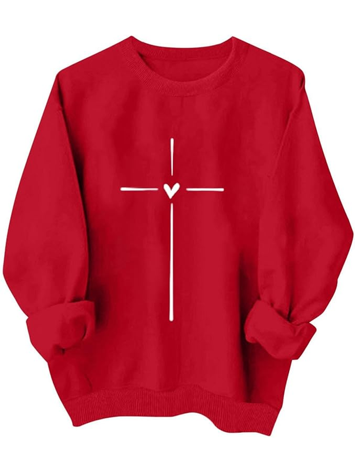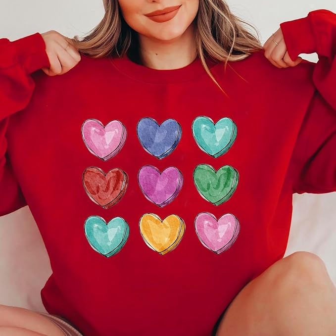 Crew Neck Casual Heart Cotton-Blend Sweatshirt