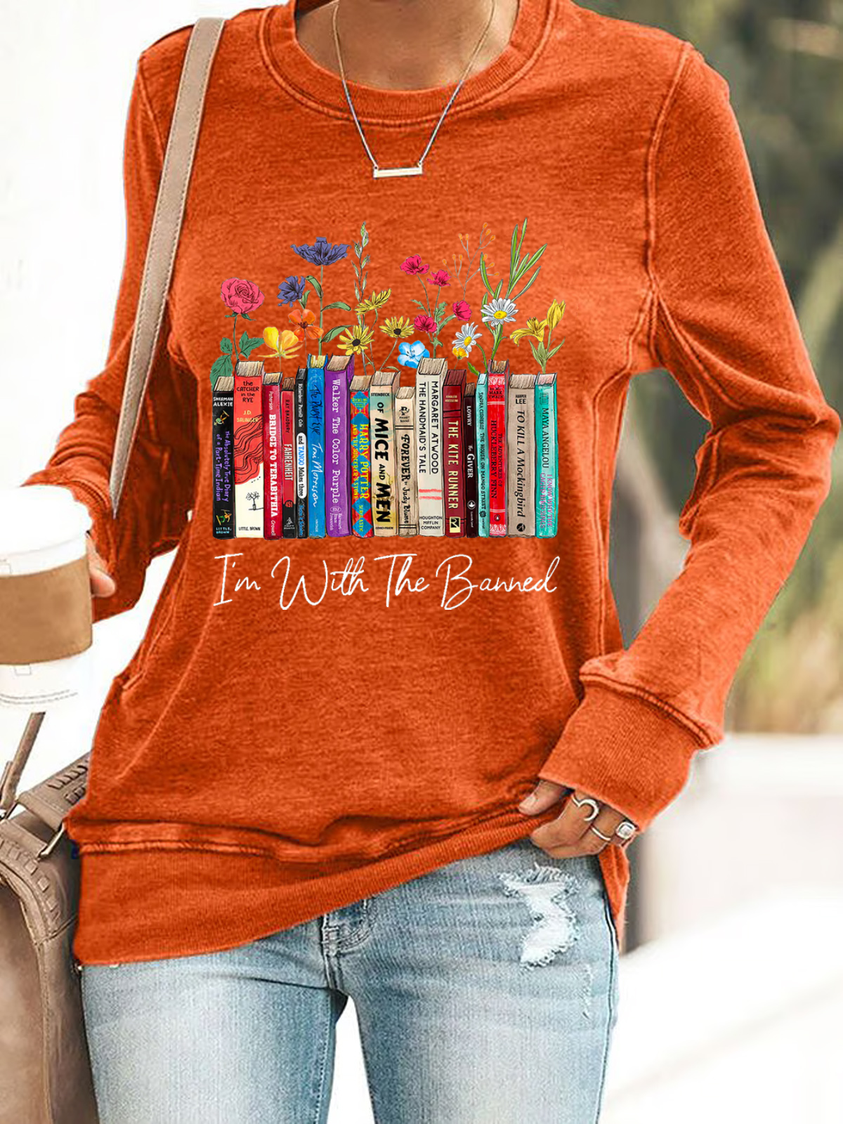 I'm With The Banned Flowers Book Lover Gift Casual Sweatshirt