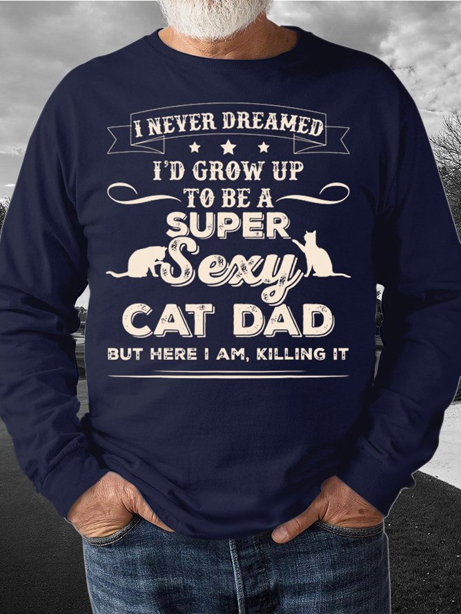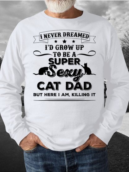 Men’s I Never Dreamed I’d Grow Up To Be A Super Sexy Cat Dad Text Letters Regular Fit Casual Crew Neck Sweatshirt