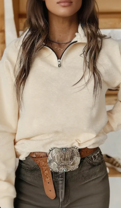 Plain Simple Cotton-Blend Loose Sweatshirt