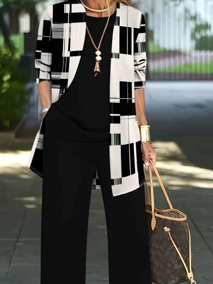 Women's Printing Abstract Daily Going Out Matching Outfit Black Casual Spring/Fall Multi-Piece Set Matching Set