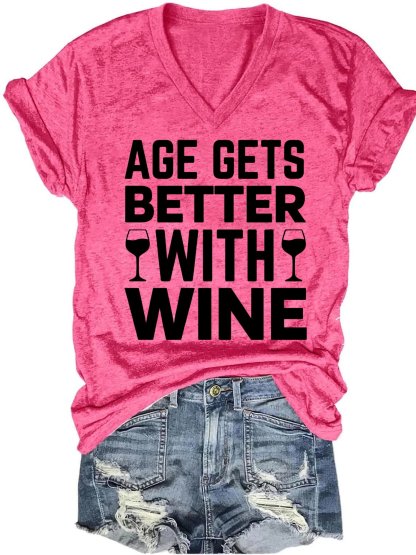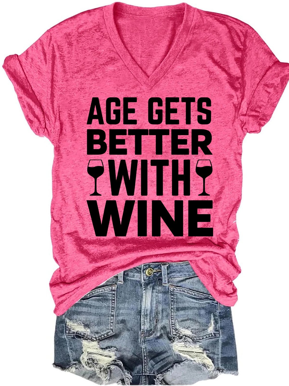 Womens Funny Alcohol Letters Casual V Neck T-Shirt