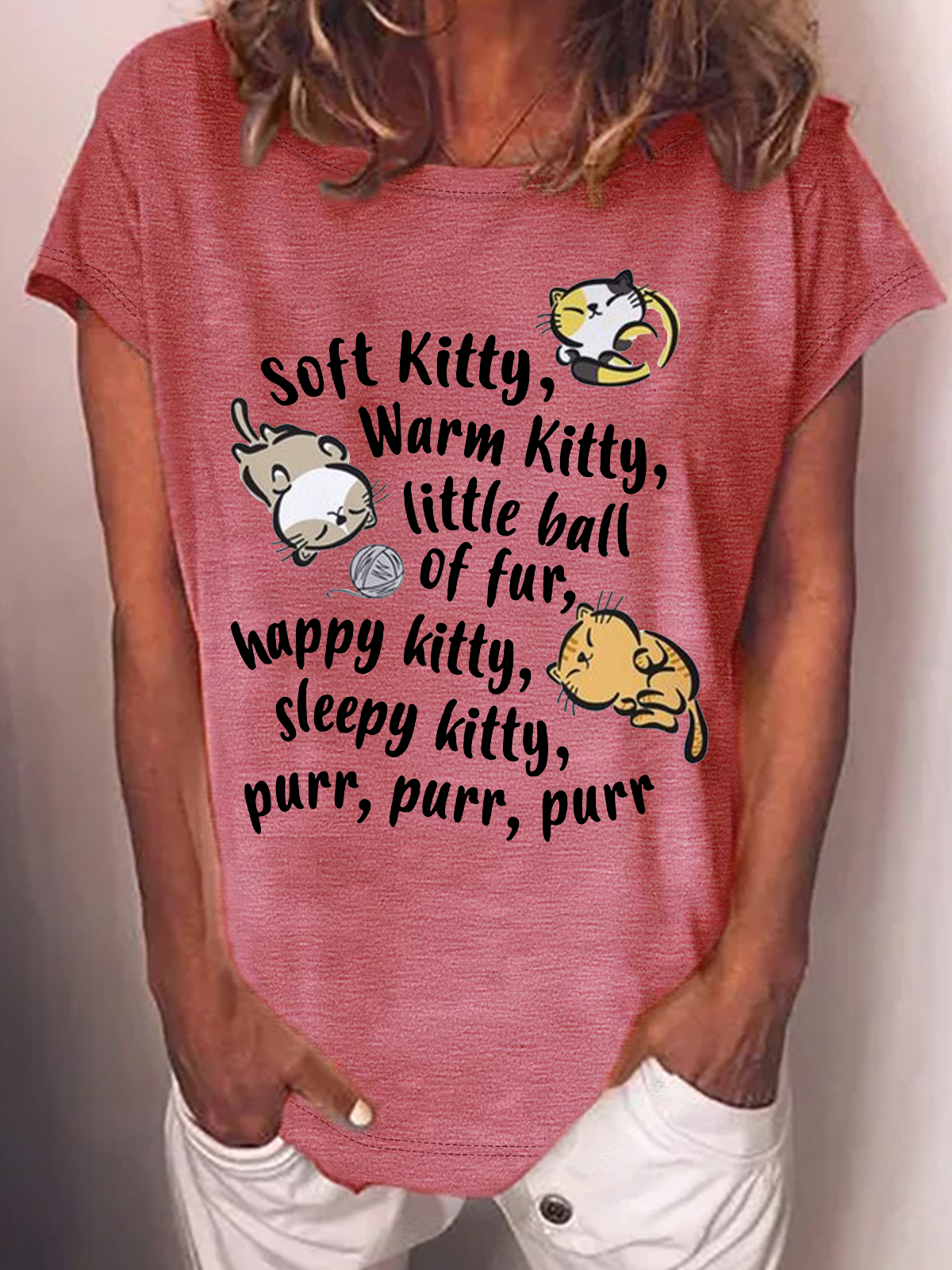 Women's Soft Kitty Warm Kitty Cat Cotton-Blend Crew Neck T-Shirt
