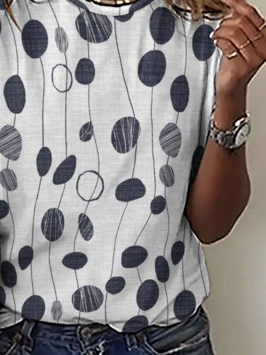 Casual Abstract Geometric Print Crew Neck T-Shirt