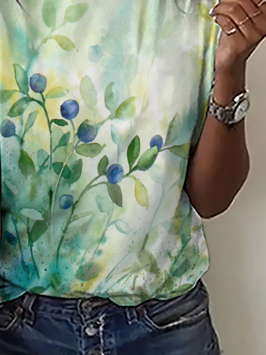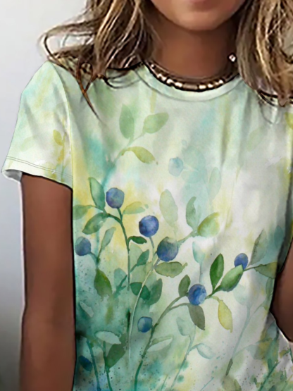 Casual Simple Plants Gradient Print Crew Neck T-Shirt