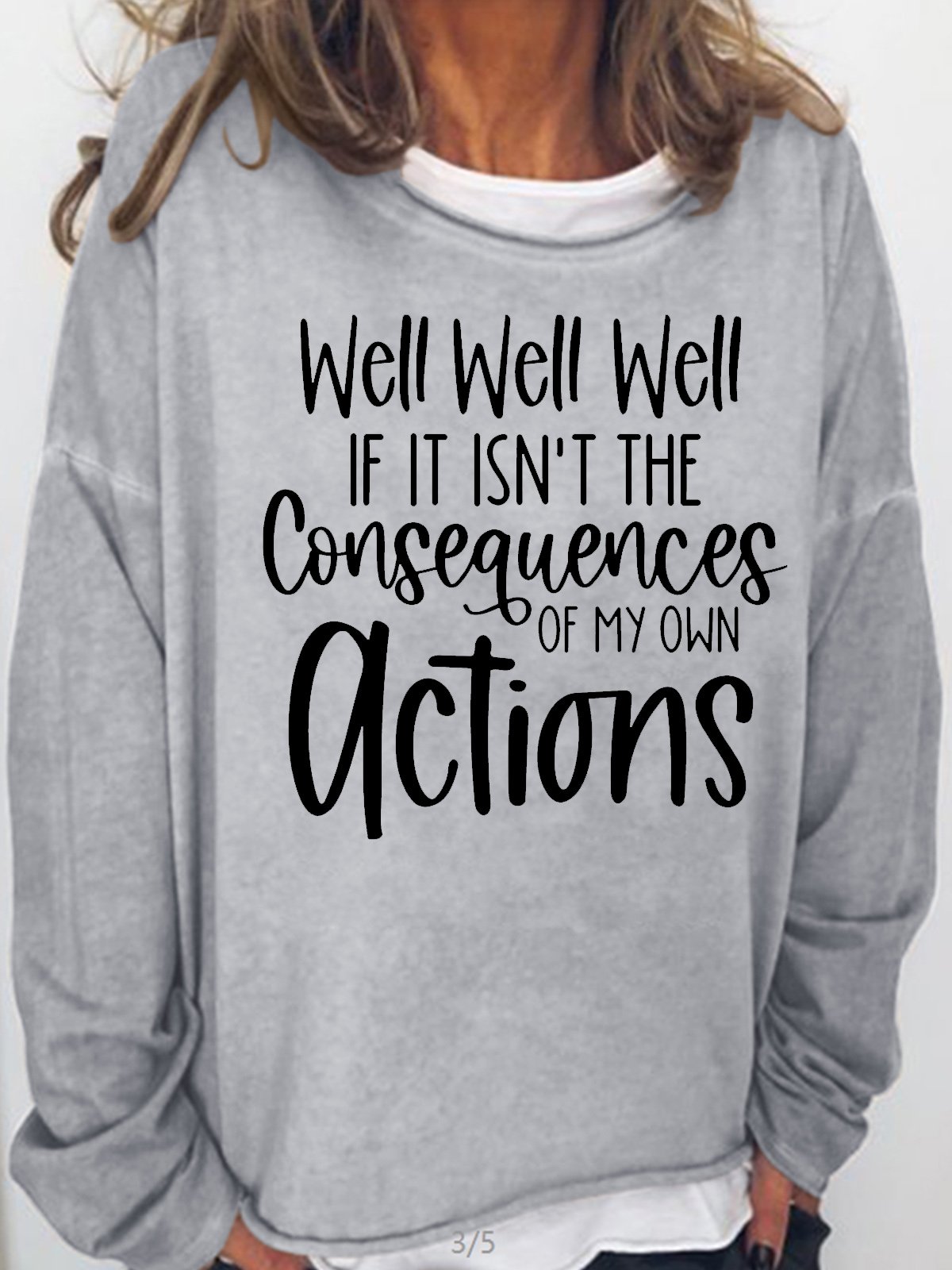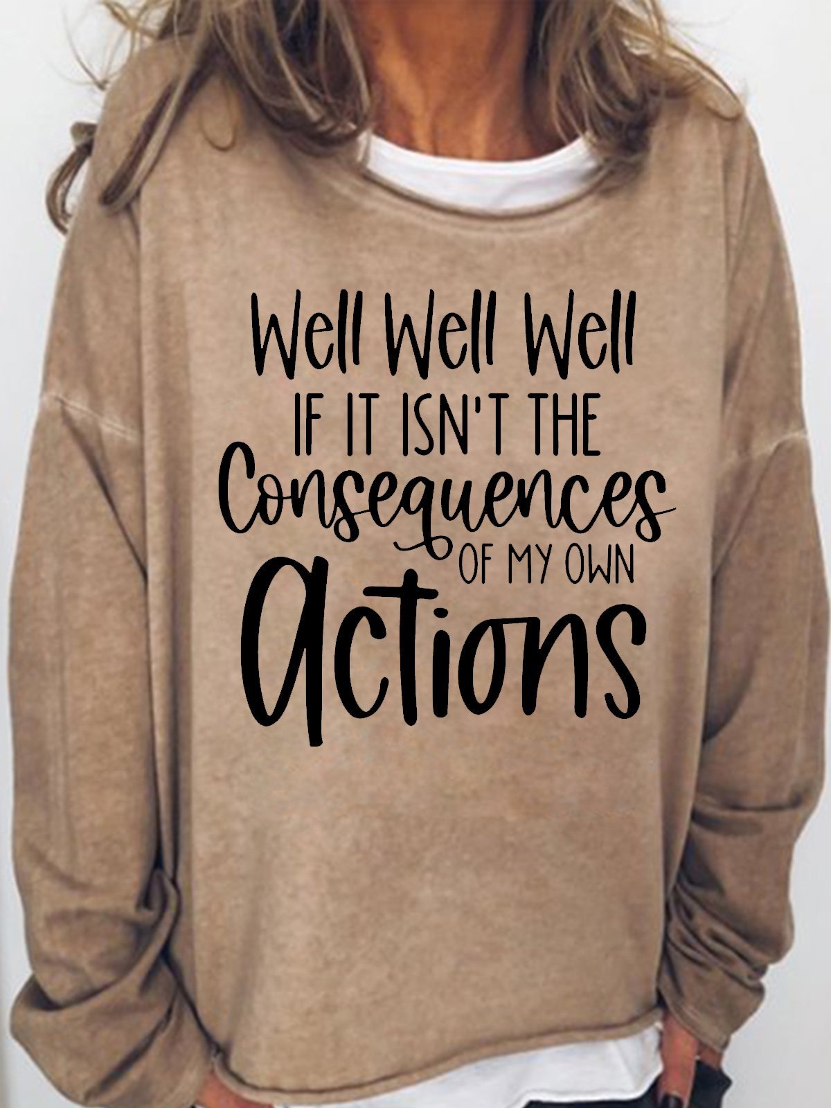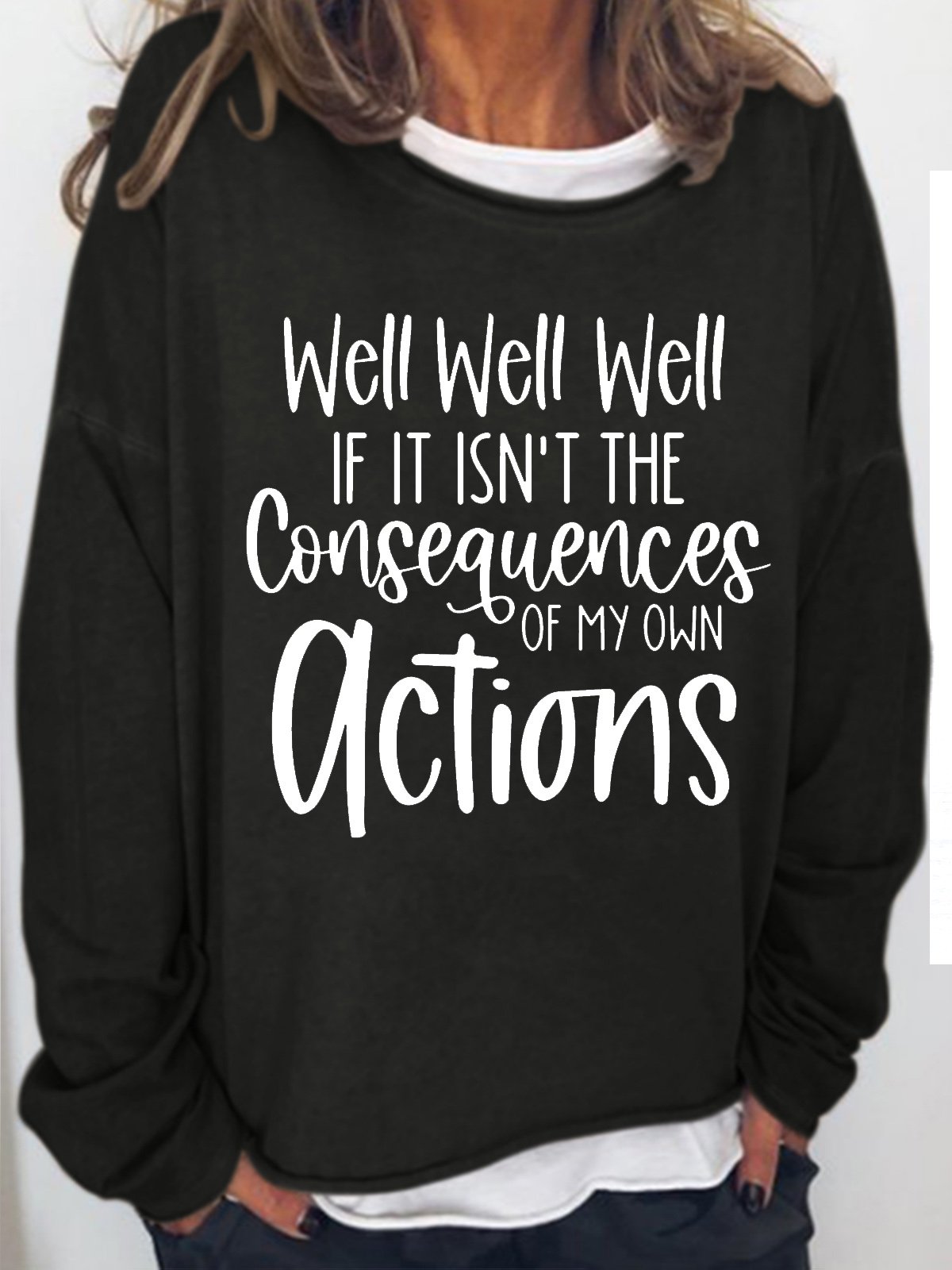 Women's Well Well Well Consequences Of My Actions Sarcastic Casual Crew Neck Sweatshirt
