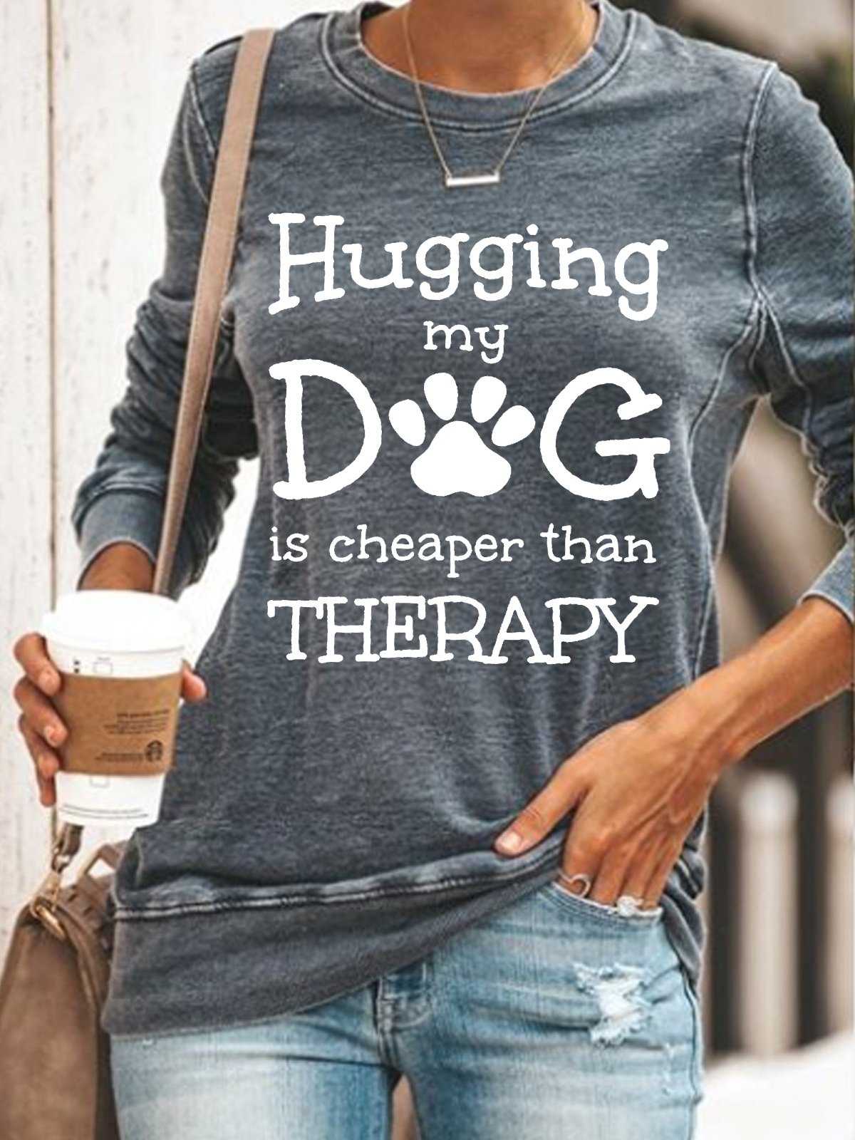 Hugging My Dog Is Cheaper Than Therapy Fit Sweatshirts