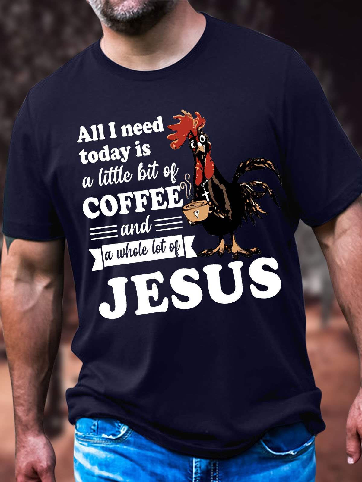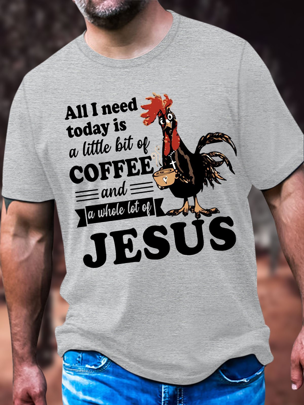Men's All I Need Today Is A Little Bit Of Coffee And A Whole Lot Of Jesus Funny Graphic Printing Crew Neck Cotton Text Letters Casual T-Shirt