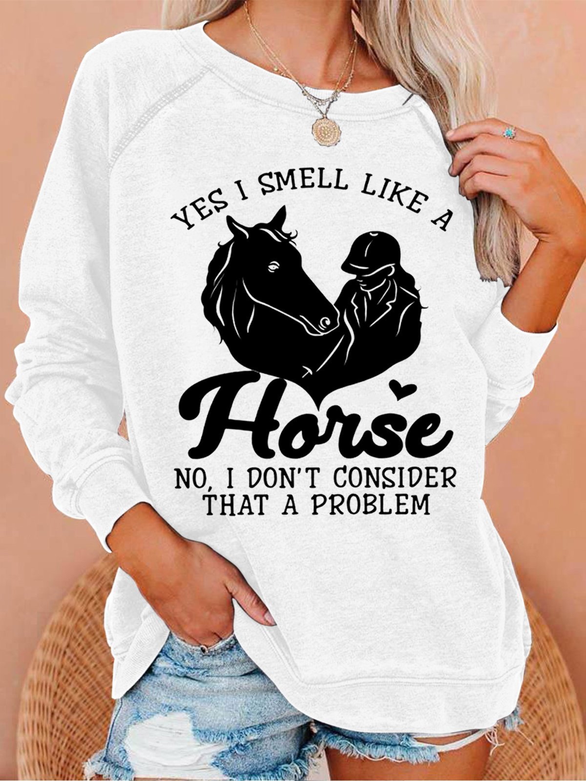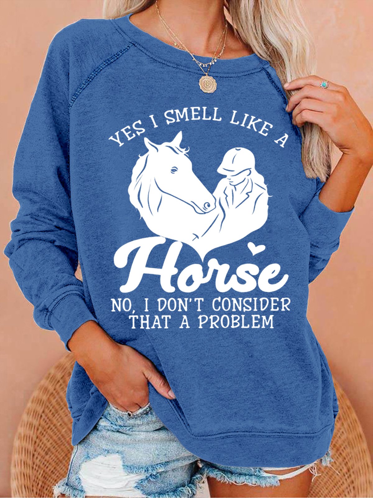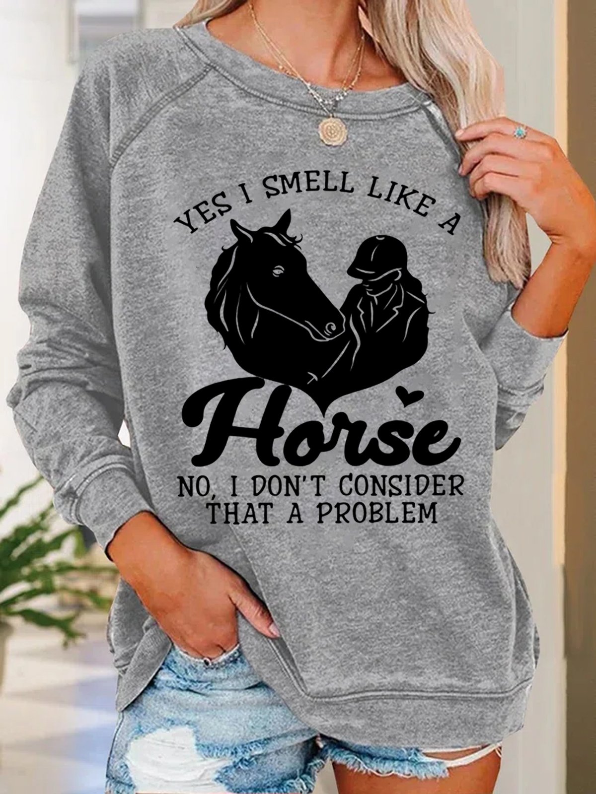 Women‘s Horse Yes I Smell Like A Horse No I Do Not Consider That A Problem Loose Simple Sweatshirt