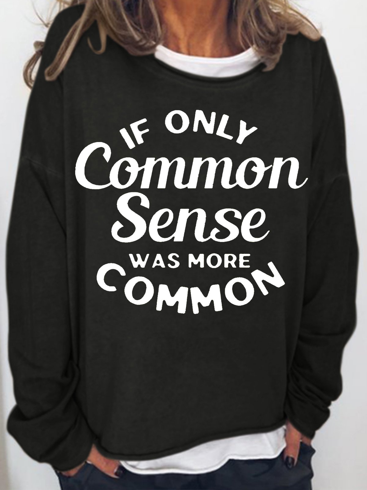 Women's If Only Common Sense Was More Common Casual Funny Letters Sweatshirt