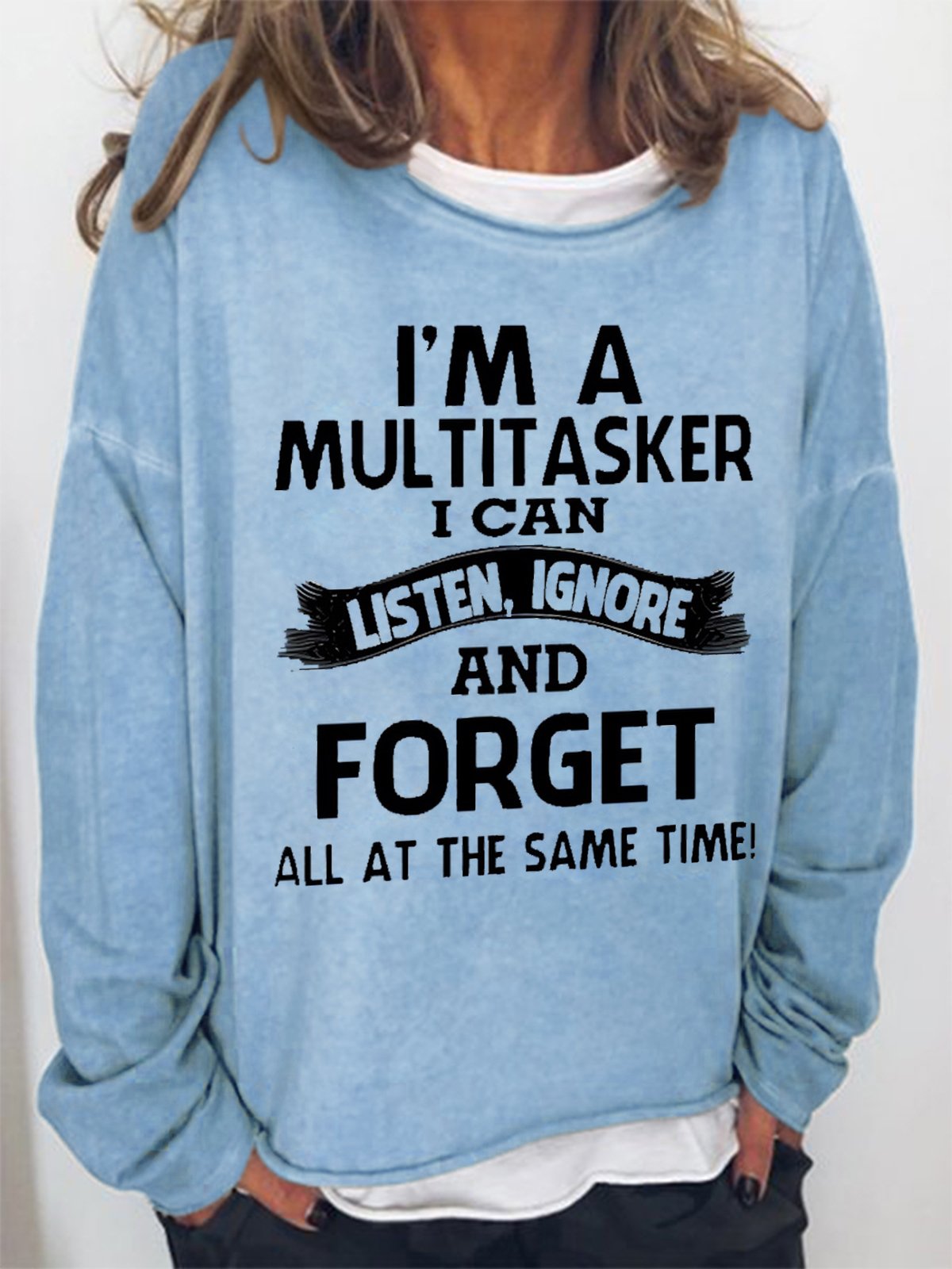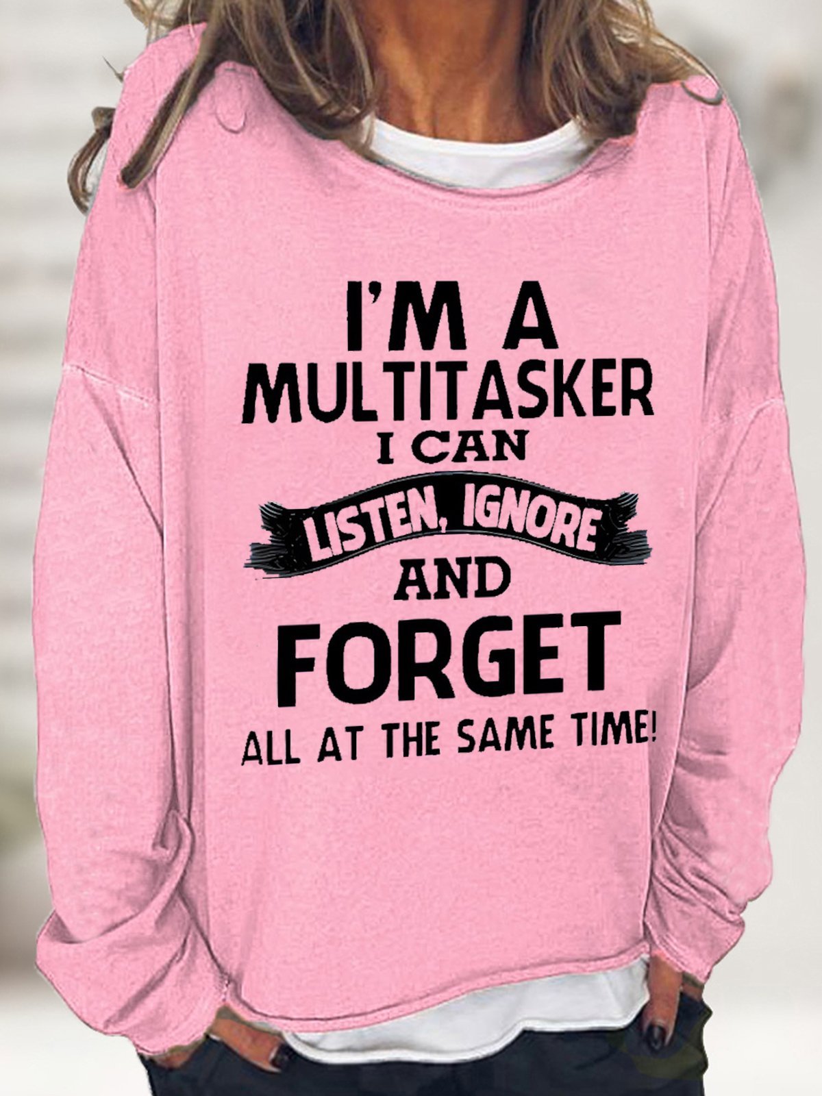 Women's I'm A Multitasker I Can Listen Ignore And Forget All At The Same Time Funny Text Letters Sweatshirt